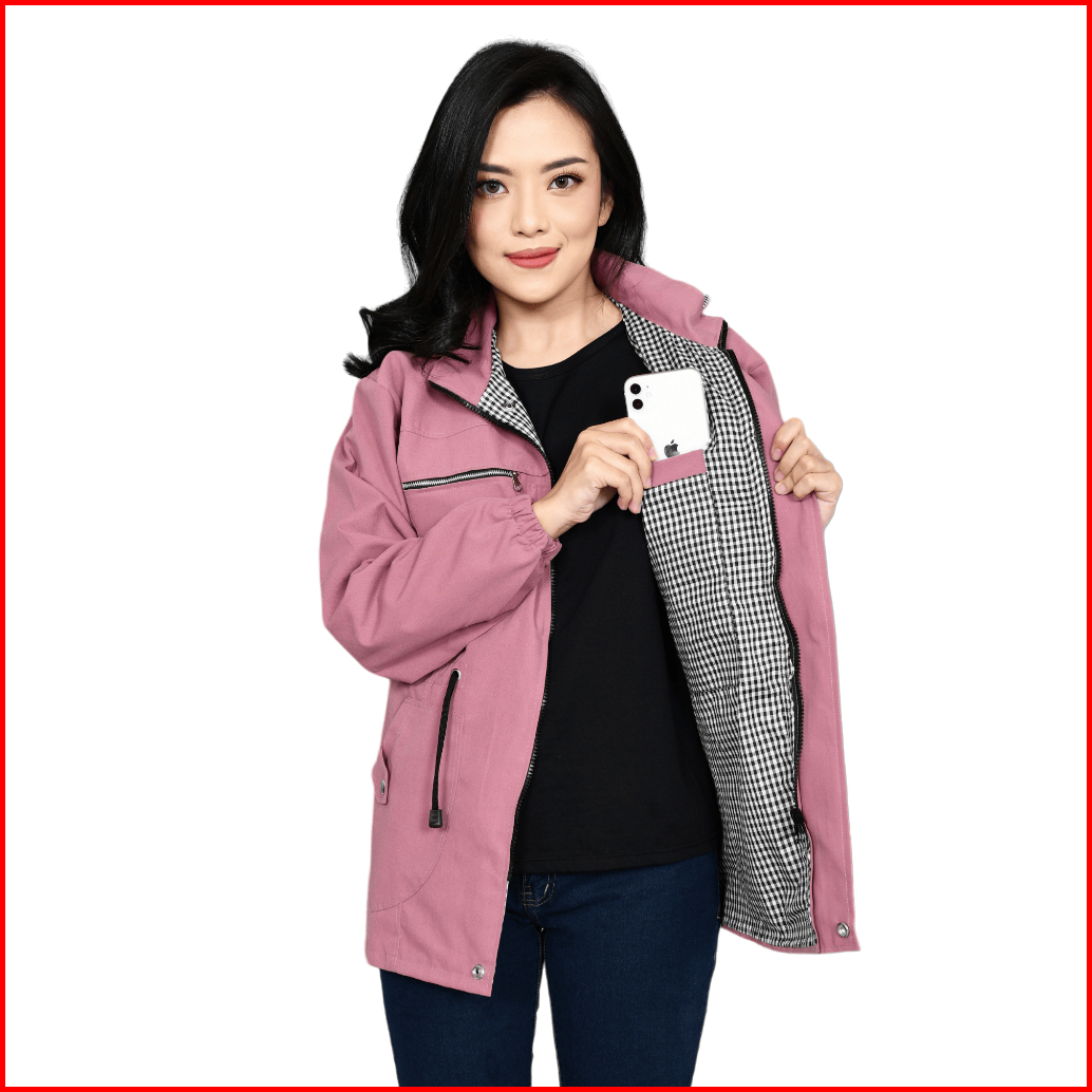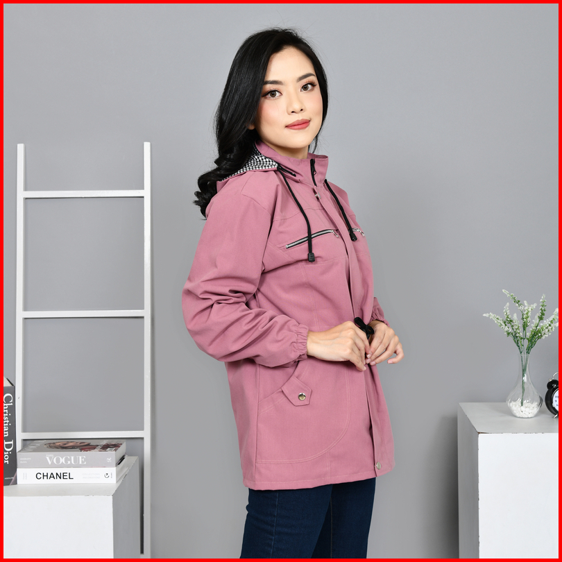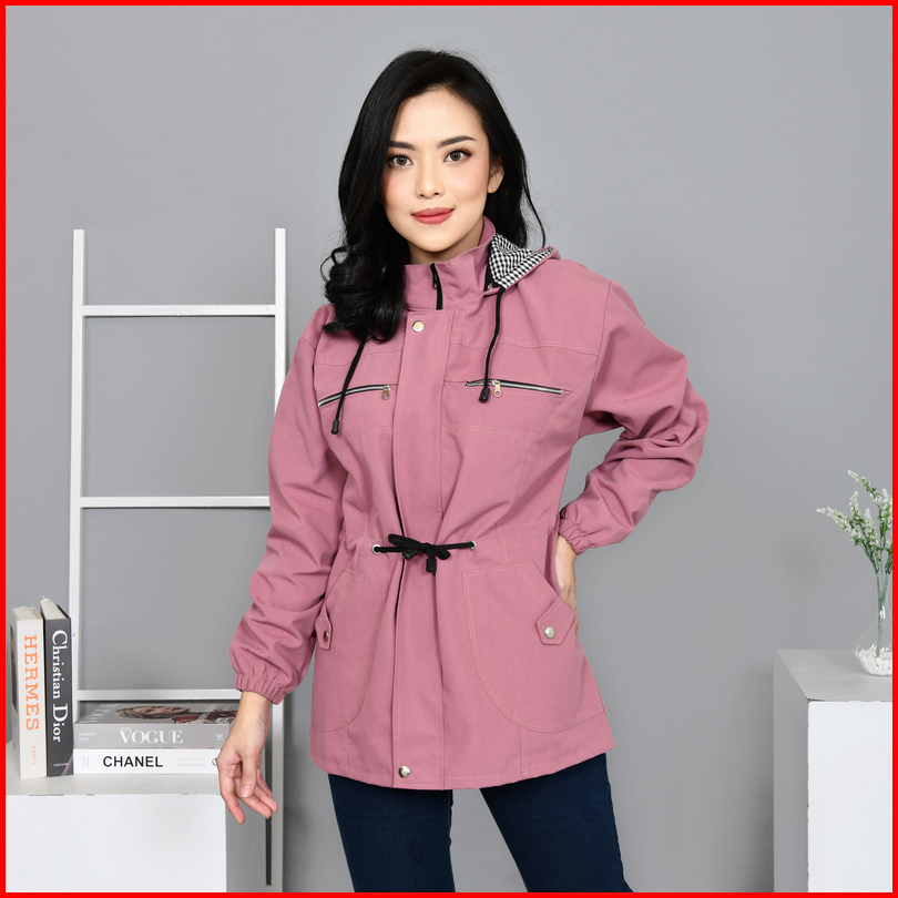 Jaket Parka Wanita Korean Style Bolak Balik Jumbo Warna Pink Dusty Ukuran M Sampai 4xl