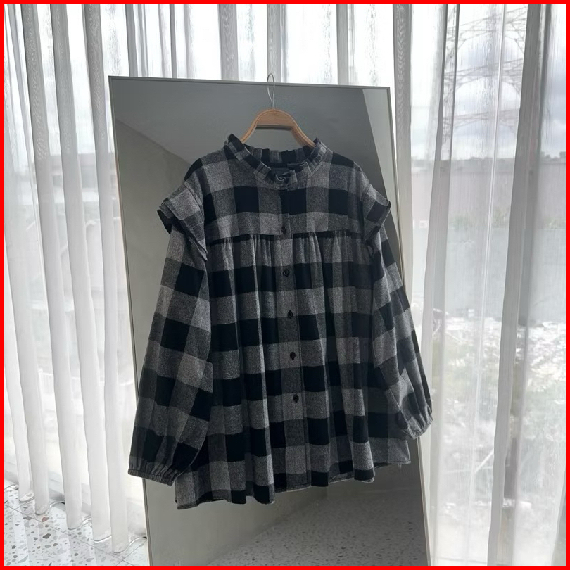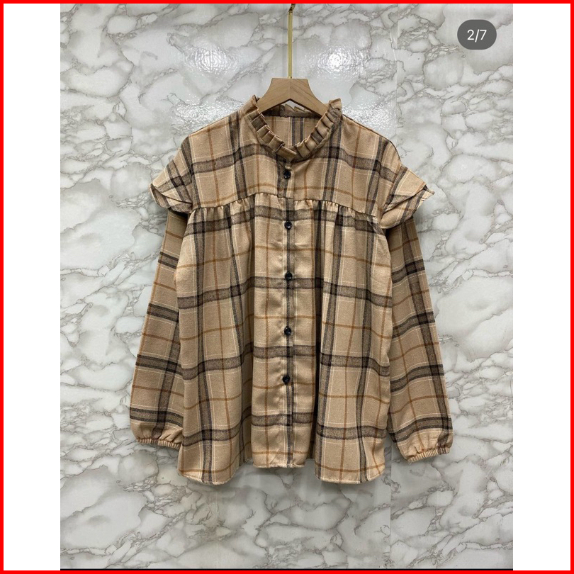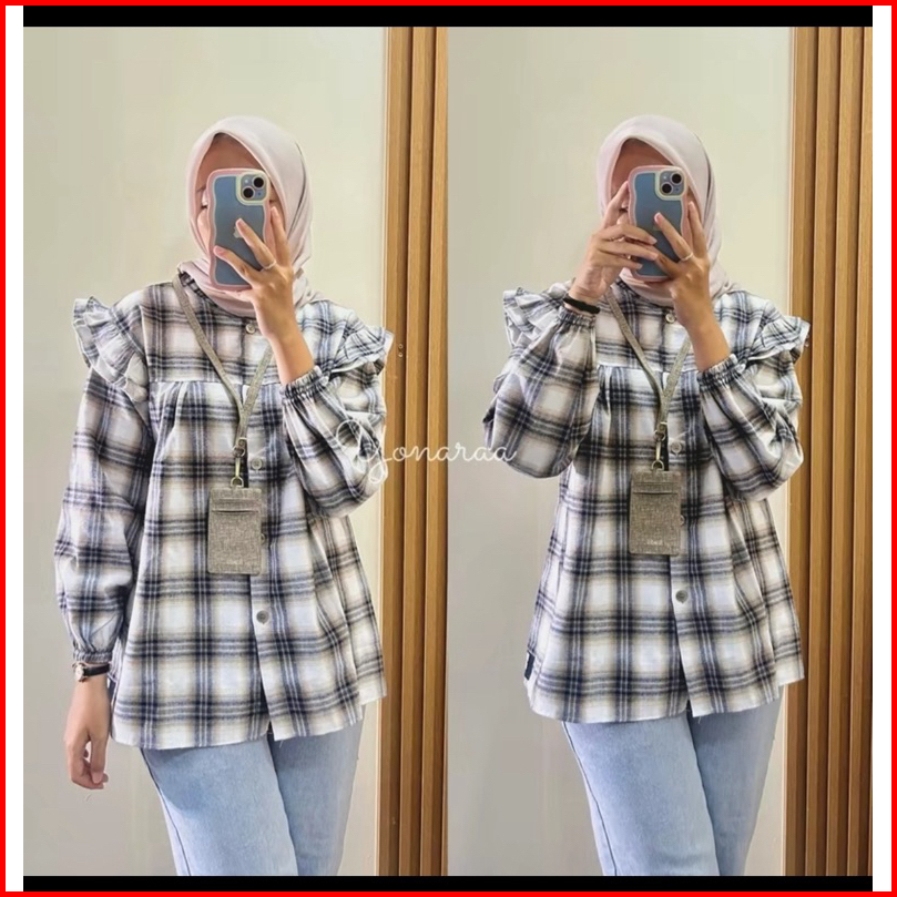 Kemeja Ruffle Flanel Gingham Shirt Flanel Kemeja Flanel Wanita Atasan Flanel Wanita Terbaru