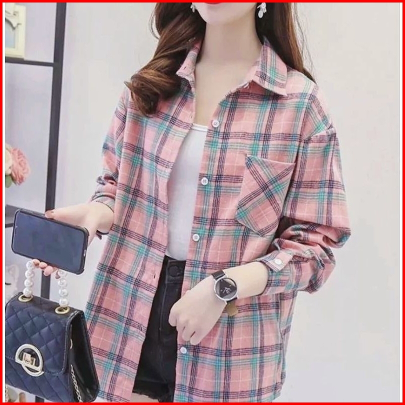Kemeja Flanel Pria Wanita Lengan Panjang Kotak