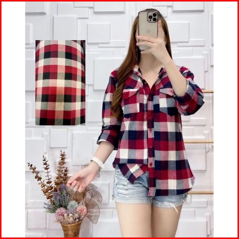Atasan Wanita Termurah Kemeja Flanel Premium Kemeja Kotak Kotak