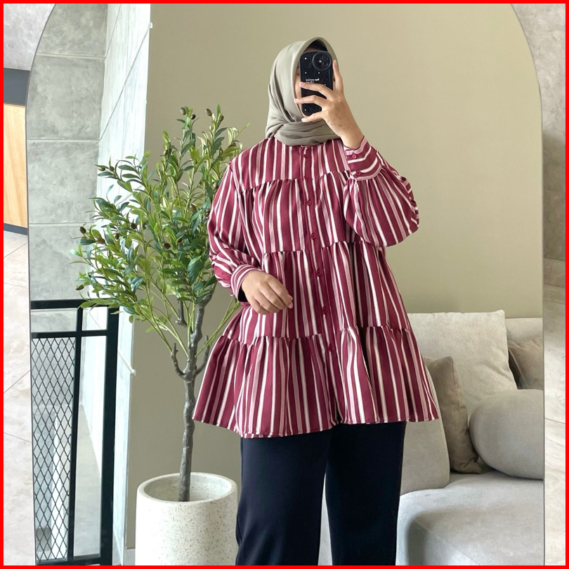Hanako 157 Kemeja Rempel Motif Kemeja Flanel Kemeja Katun Kemeja Salur