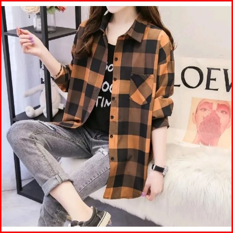 Kemeja Flanel Wanita Kotak Kotak Terhits Terlaris