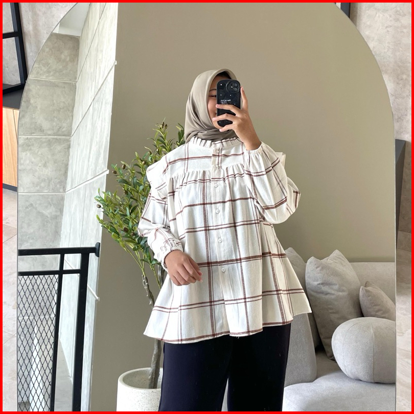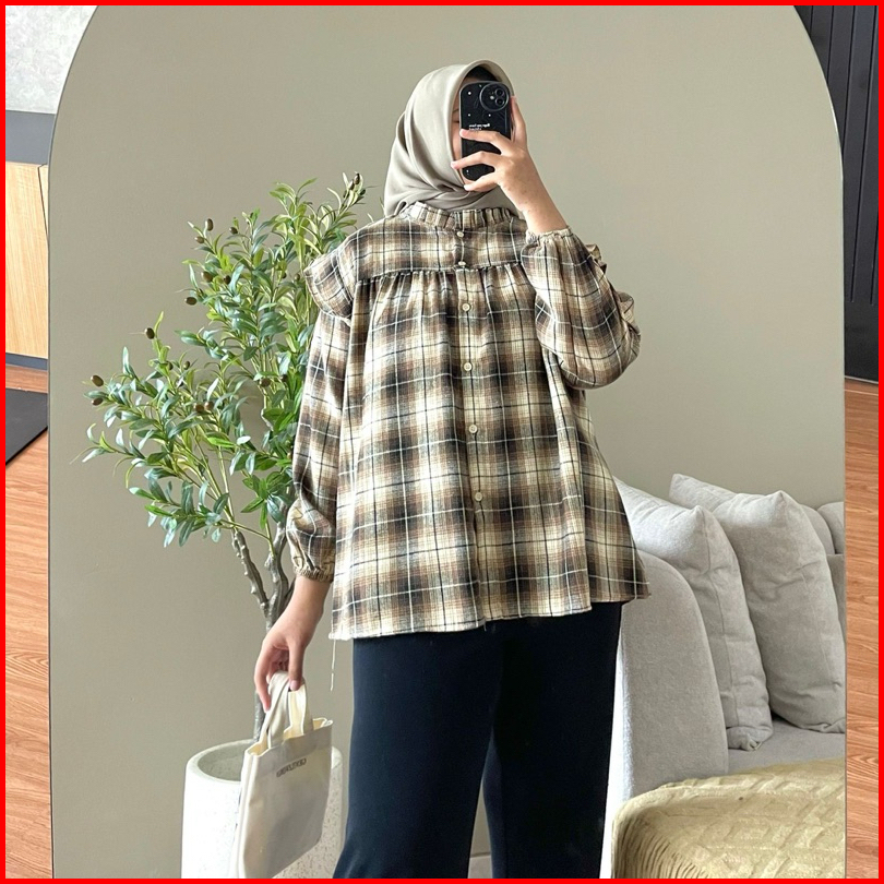 Hanako 170 Kemeja Flanel Kerah Ruffle