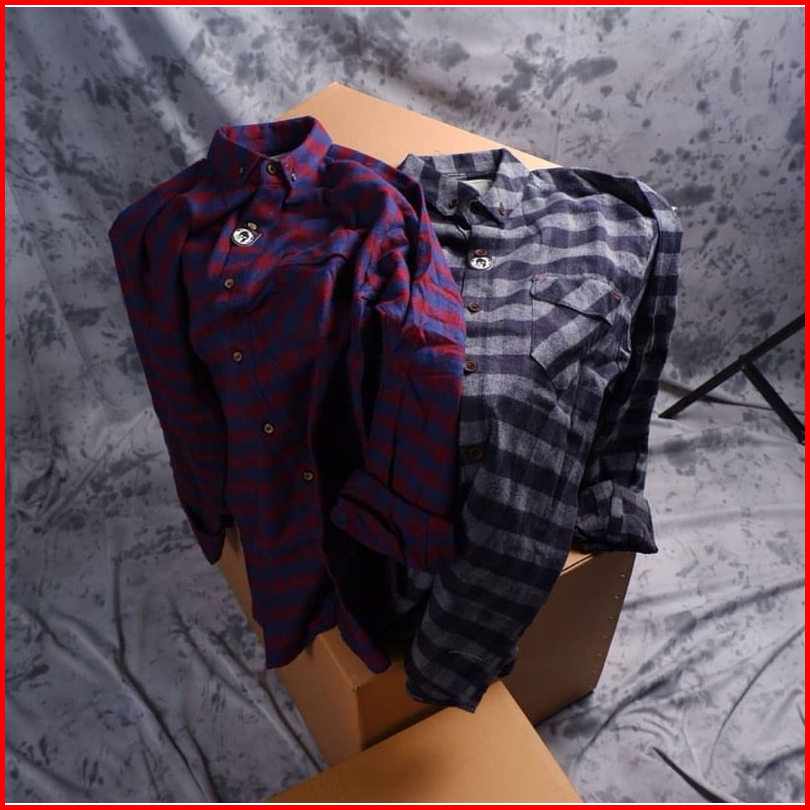 Bigfun.id Kemeja Flanel Lengan Panjang Kemeja Kotak-kotak Lengan Panjang Kemeja Flanel Premium Hem Lengan Panjang