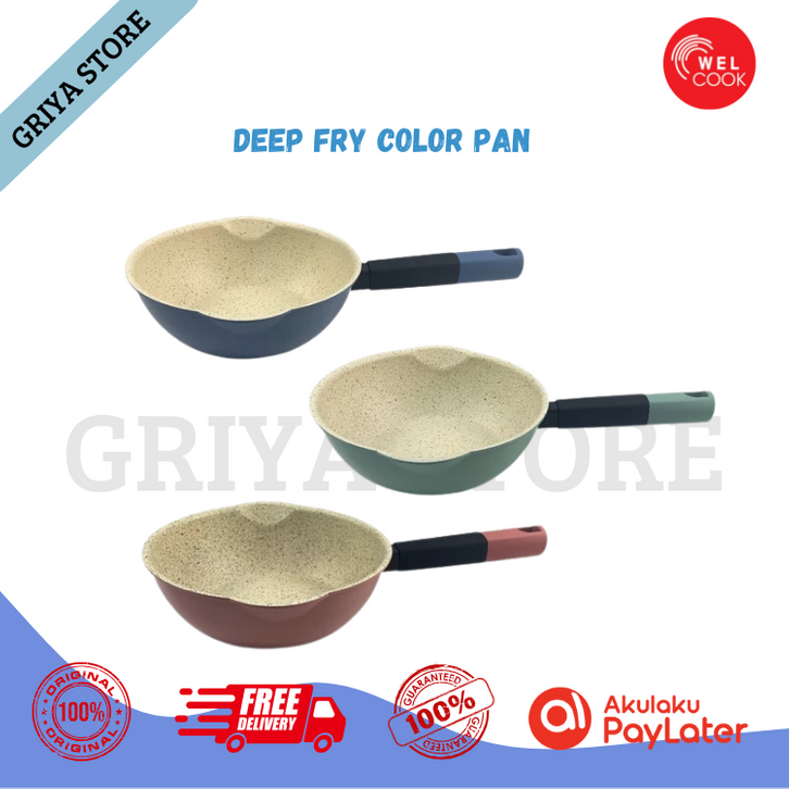 Panci Anti Lengket Welcook Deep Fry Color Pan Wajan Masak Keramik Multifungsi Original Official Store