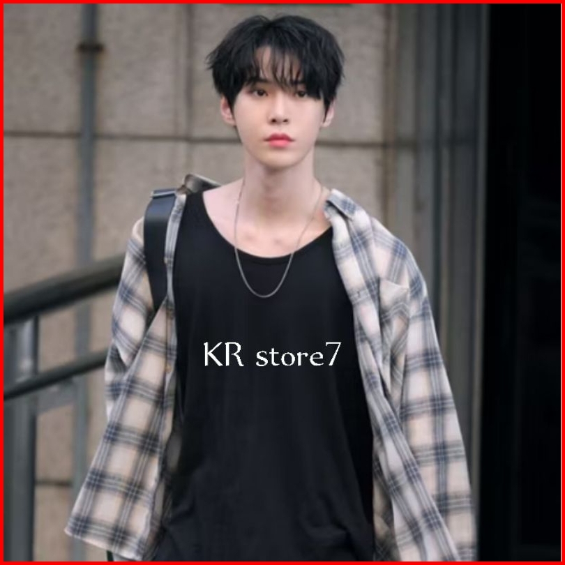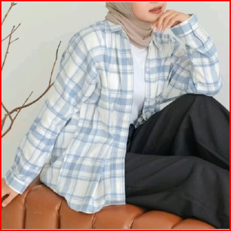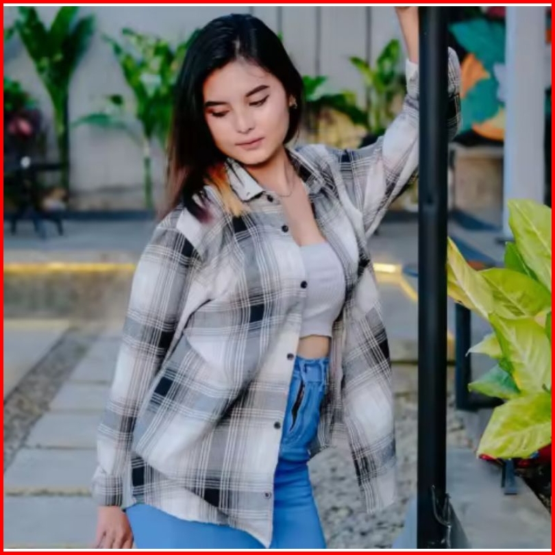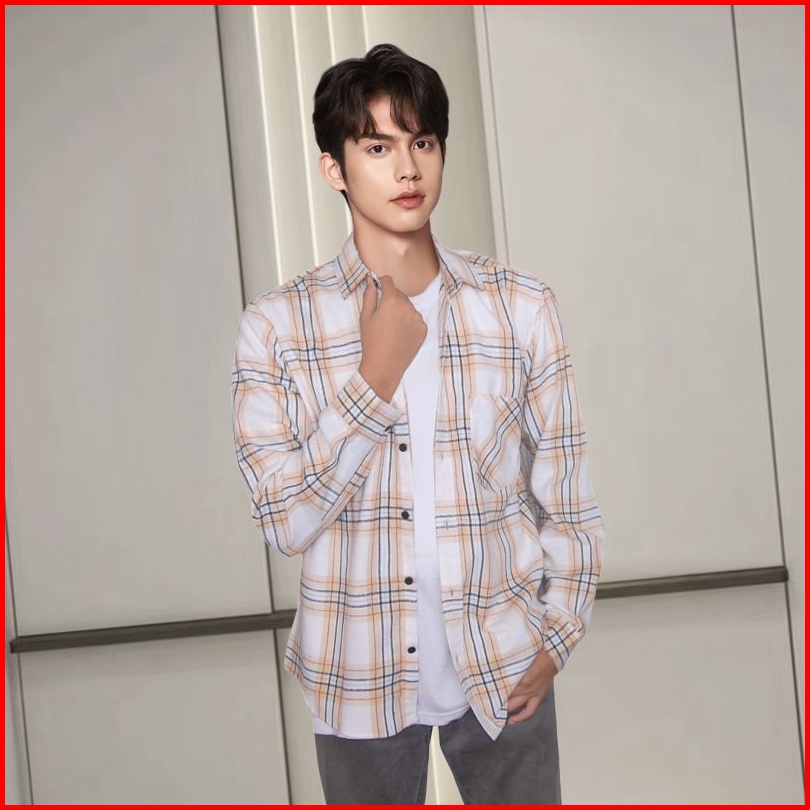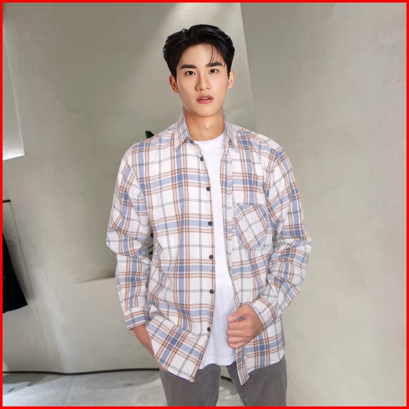 Kemeja Flanel Putih Lengan Panjang Atasan Pria Wanita