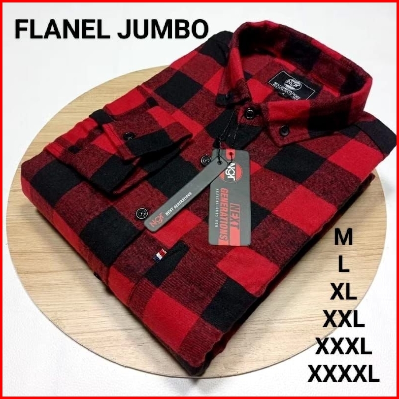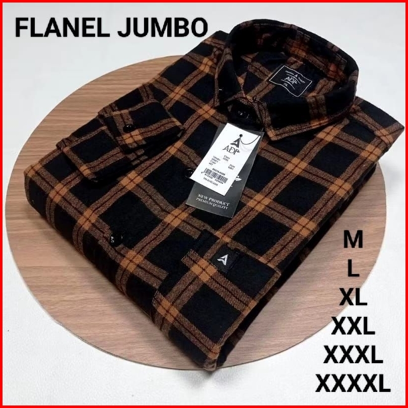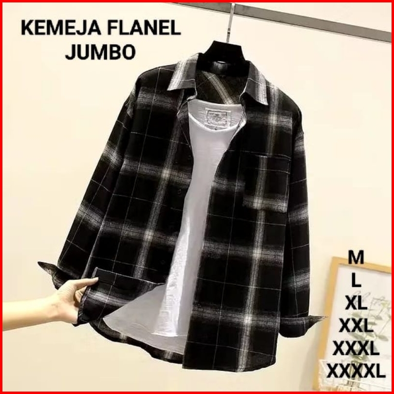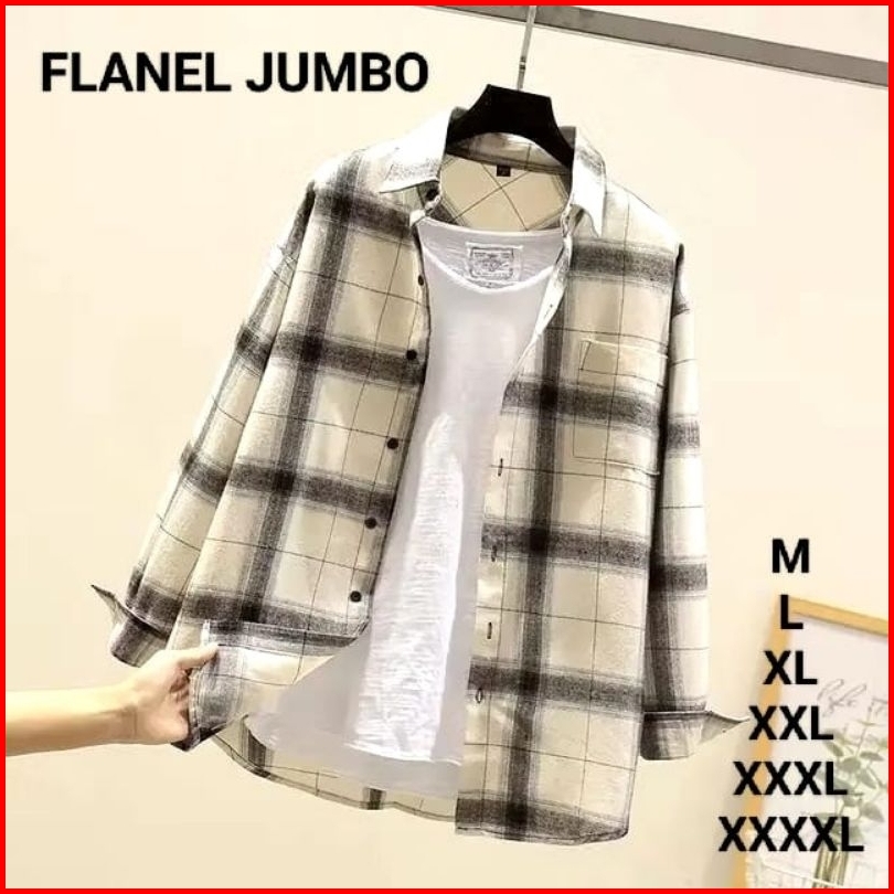 Kemeja Flanel Motif Catur Krem M-l-xl-xxl-xxxl-xxxxl Oversize Jumbo Lengan Pajang