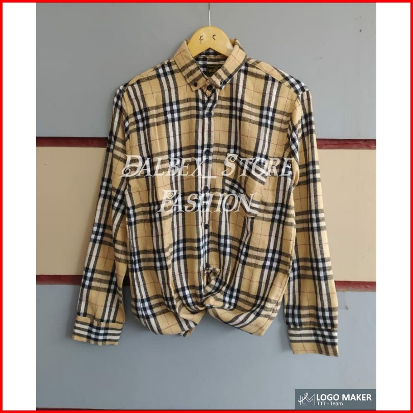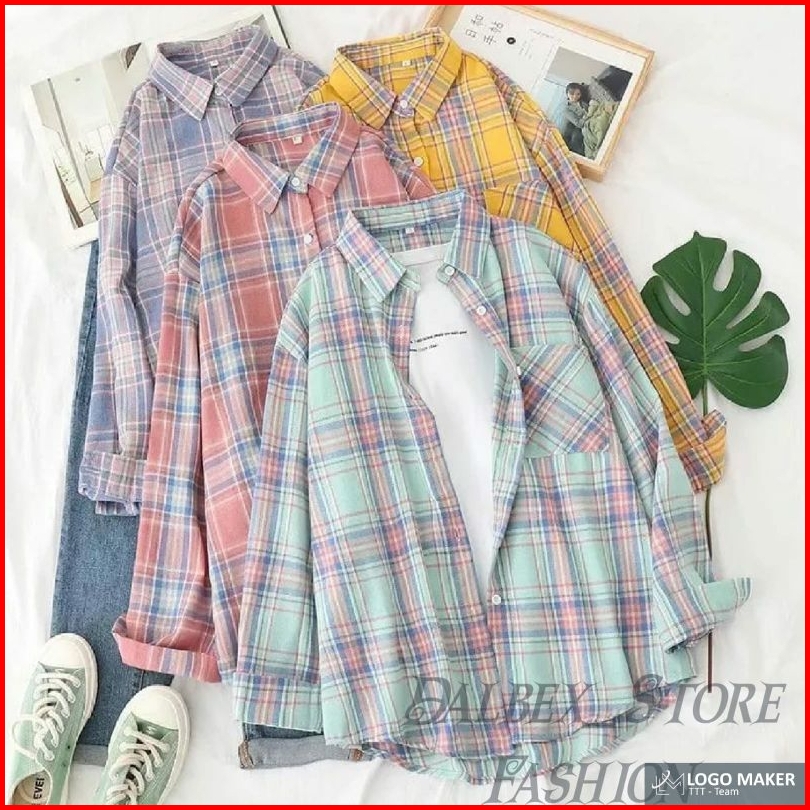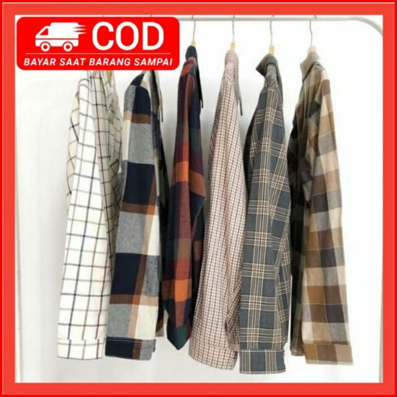 Kemeja Flanel Oversize Wanita Kemeja Unisex Jumbo Lengan Panjang
