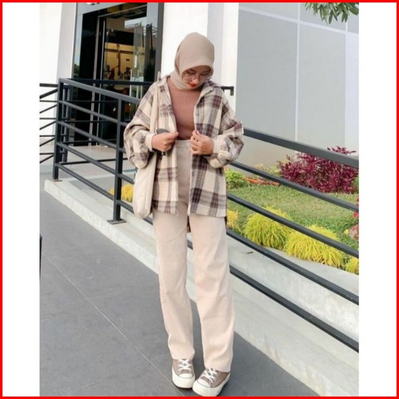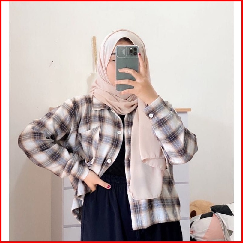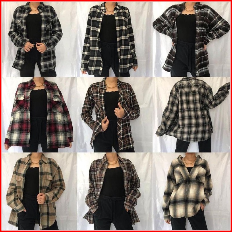 Flanel Wanita Lengan Panjang Kemeja Flanel Kotak-kotak Wanita
