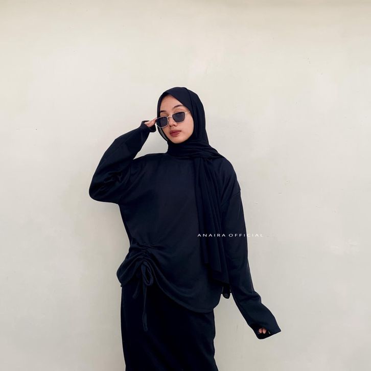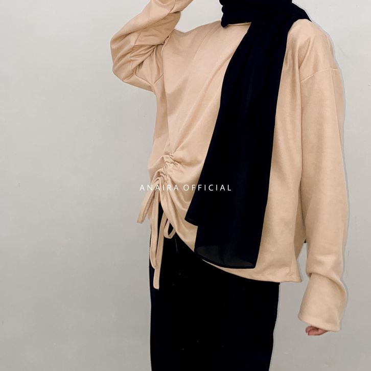 Baju Kaos Serut Bawah Atasan Blouse Serut Wanita Lengan Panjang Kekinian