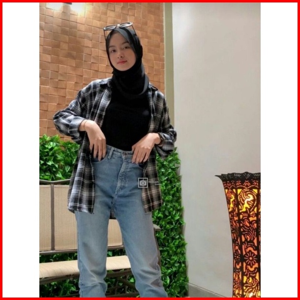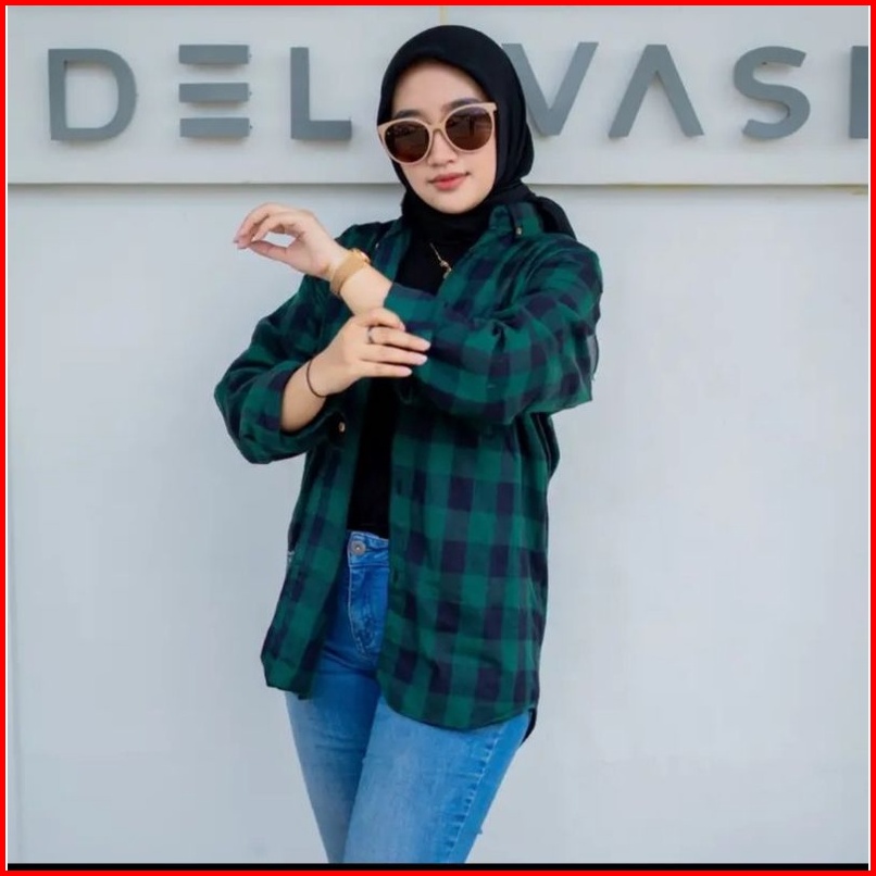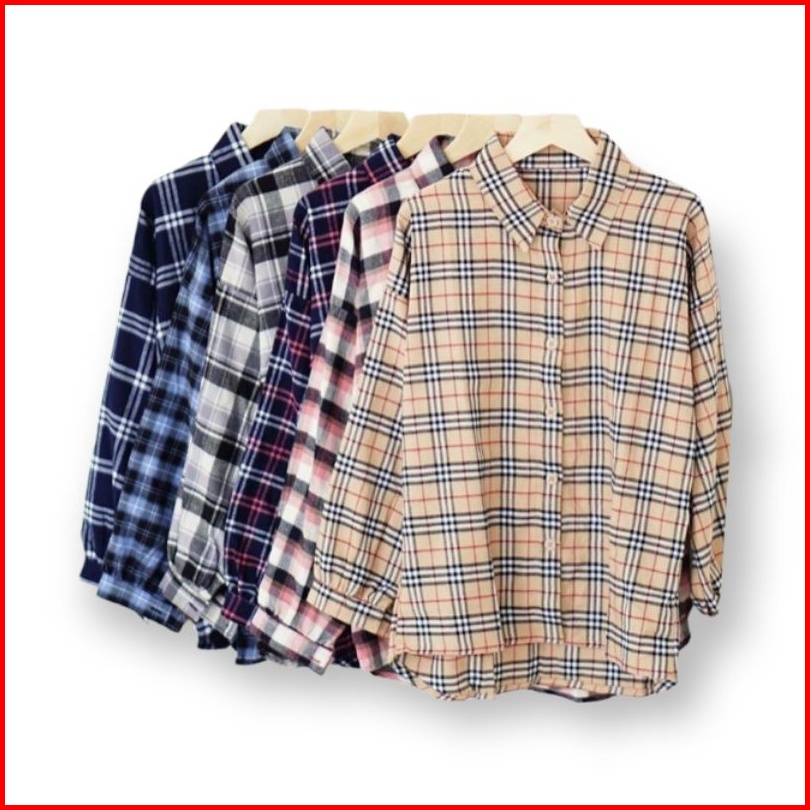 Kemeja Flanel Wanita Kemeja Kotak Lengan Panjang Cewek Atasan Tartan Kekinian