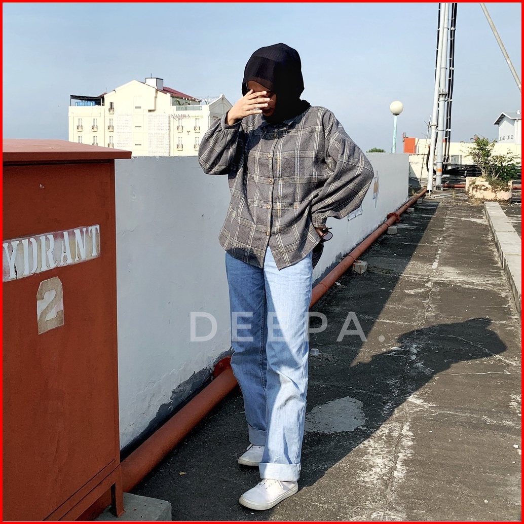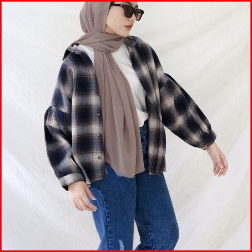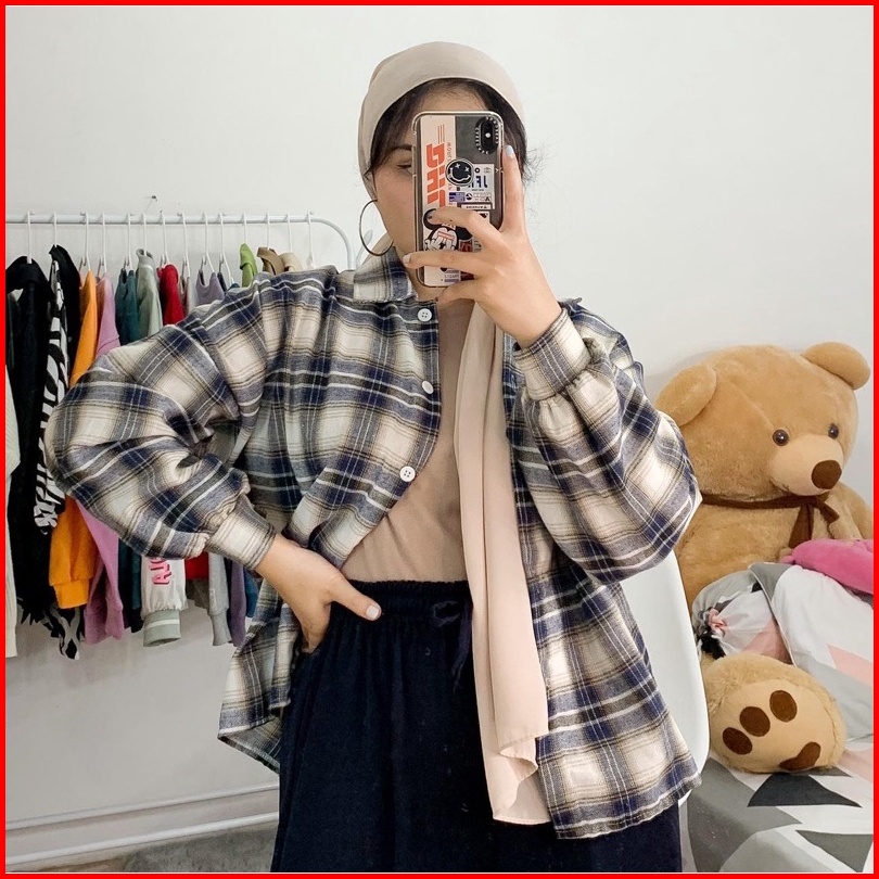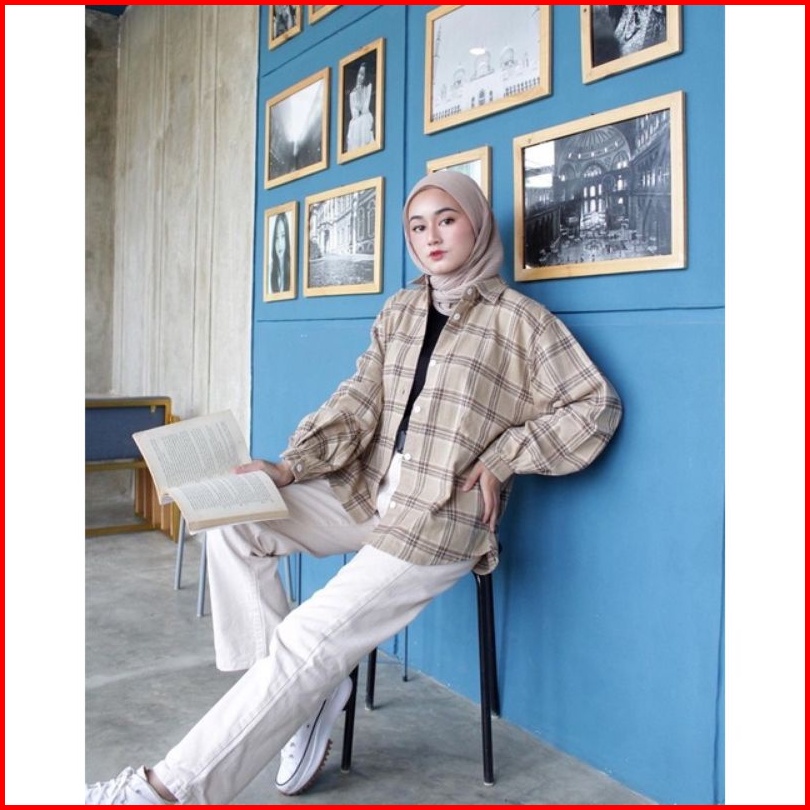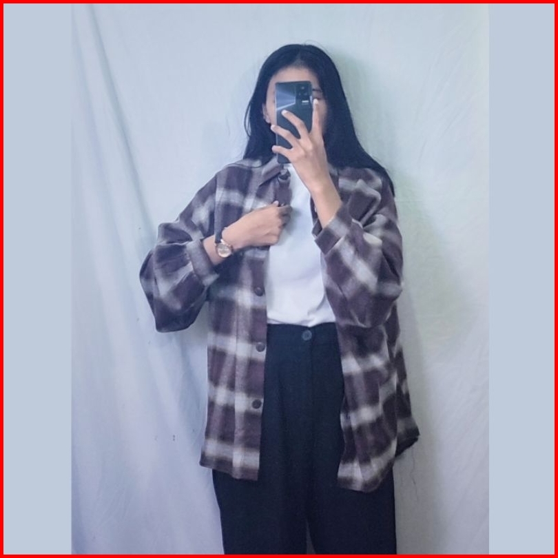 Flanel Shirt Kemeja Oversize Tartan Kemeja Flanel Wanita Model Kimberly