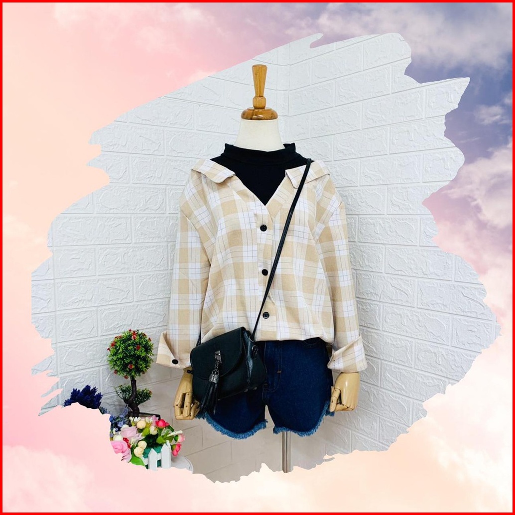 Bho - Zec Kemeja Kotak Asoi Flanel Moxie Bshk Ruffle Flanel Yega Combi Shirt Pastelicious Shirt