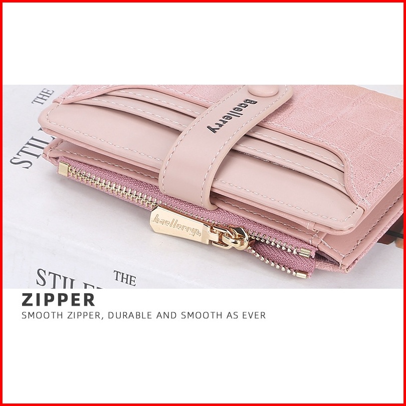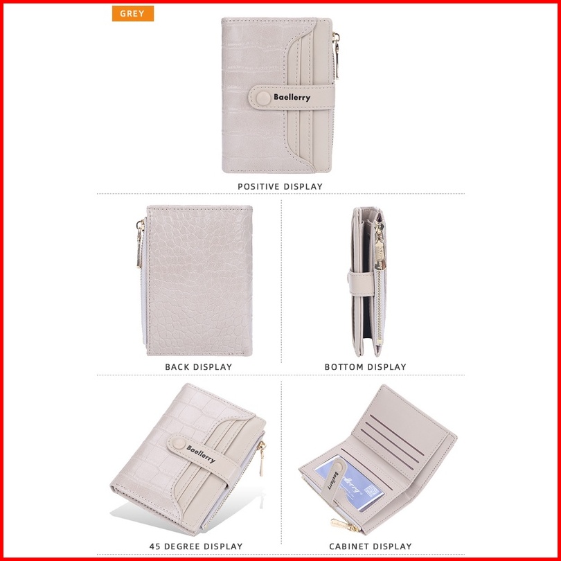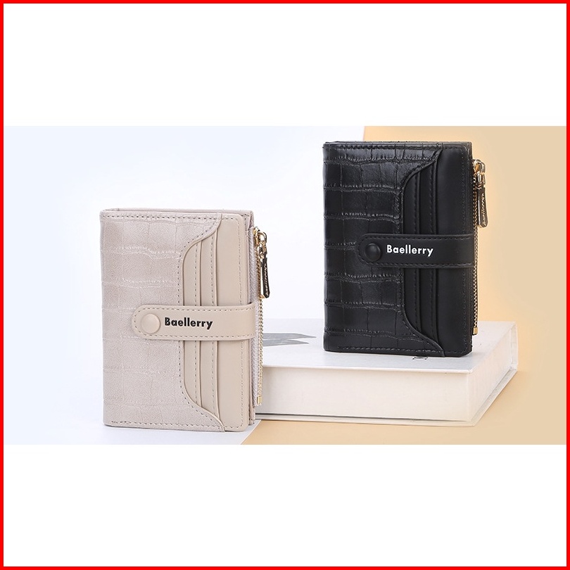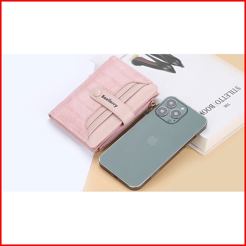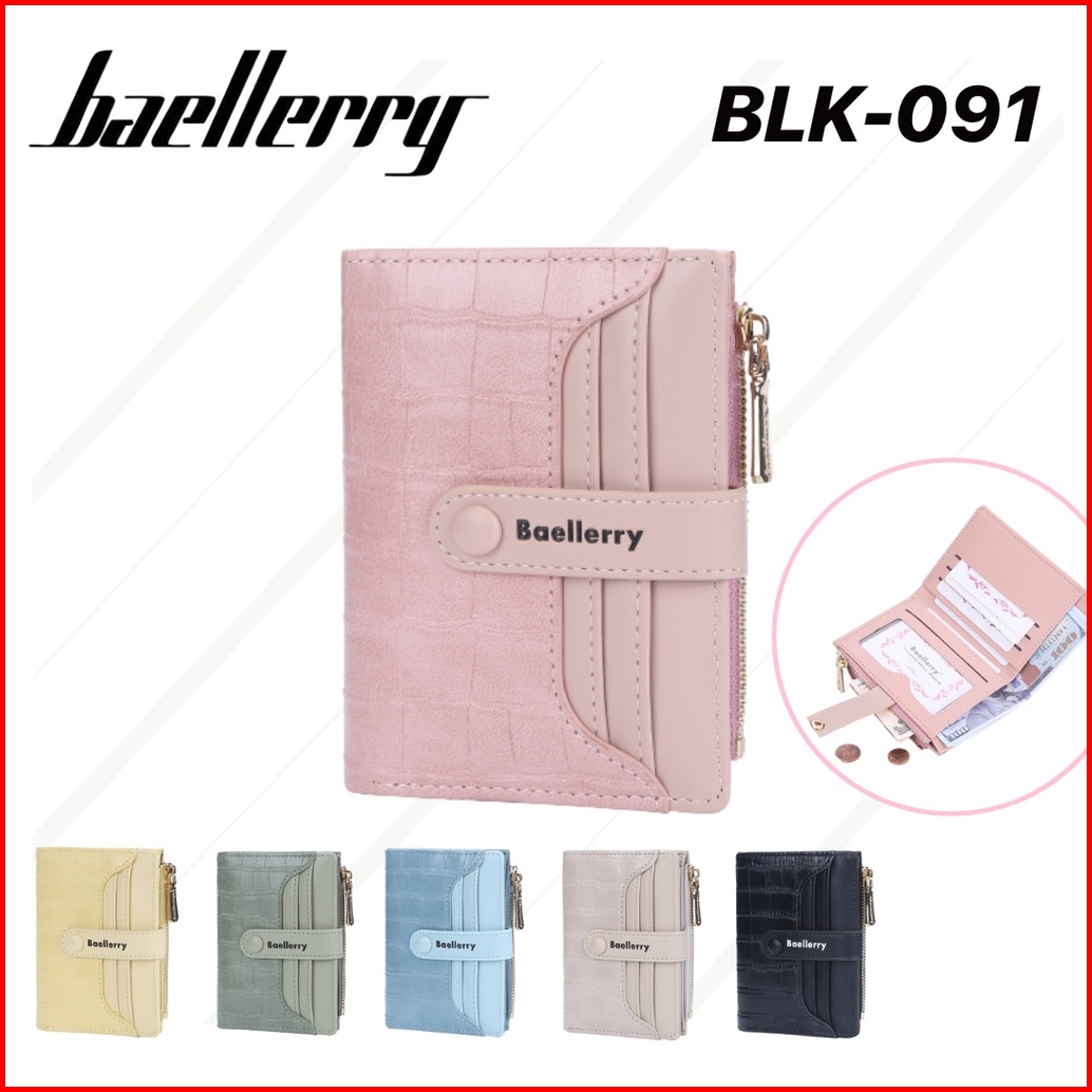 Dompet Wanita Mini Baellerry Motif Kulit Buaya Banyak Slot Kartu Kompartemen Resleting Desain Elegan Ringkas Warna Paste