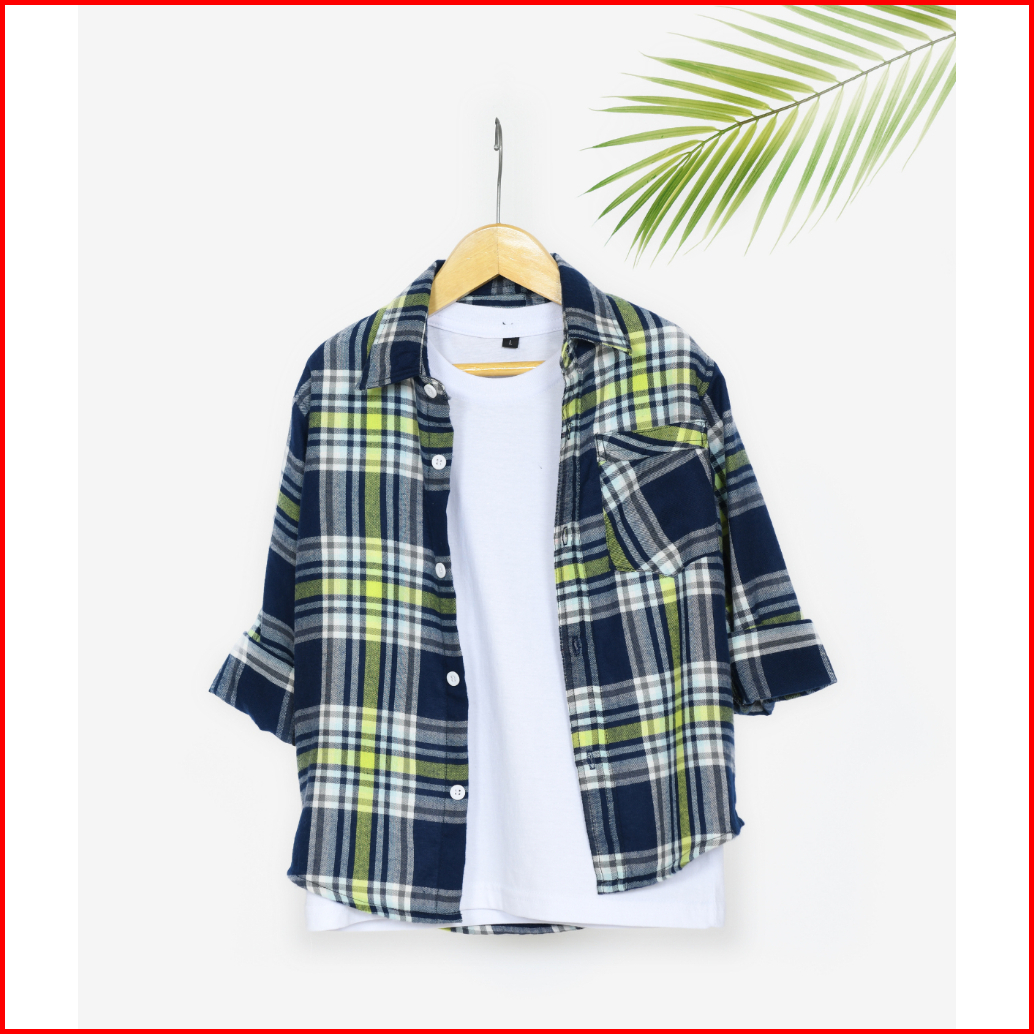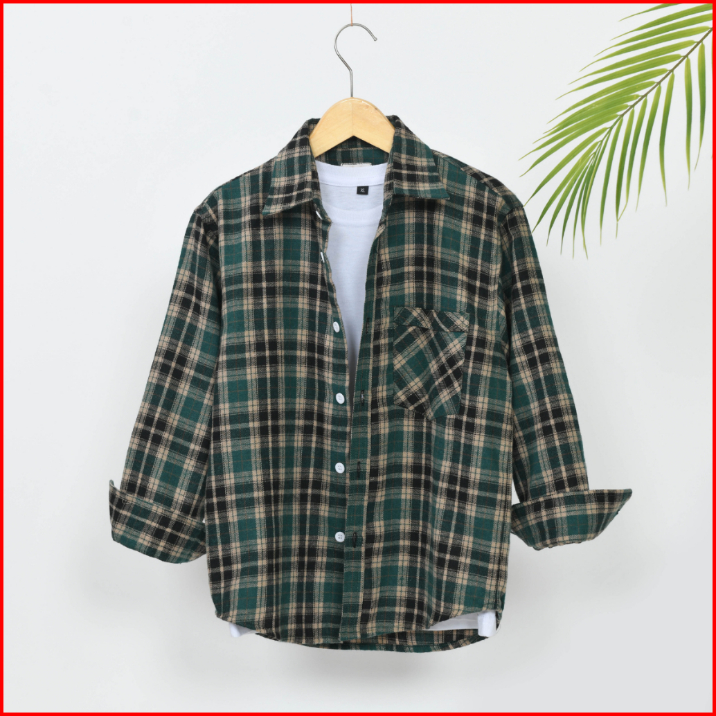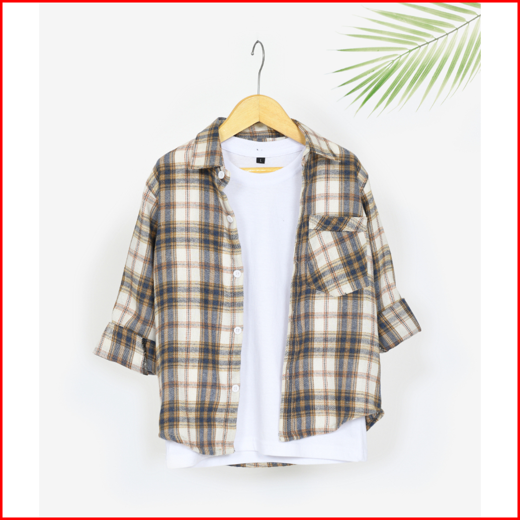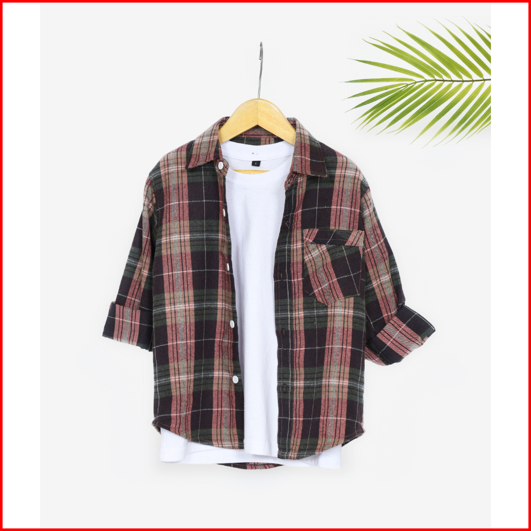 Baju Anak Laki Laki Dan Anak Perempuan Atasan Kemeja Flanel Kotak Kids Kameja Pria Wanita 4-14tahun