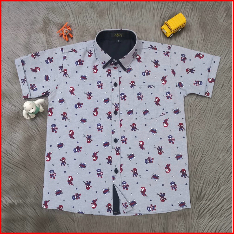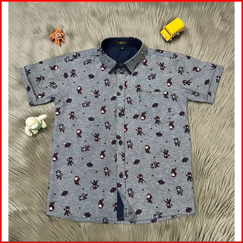 Kemeja Motif Anak Bahan Katun Kemeja Lengan Pendek Usia 1 - 14 Tahun