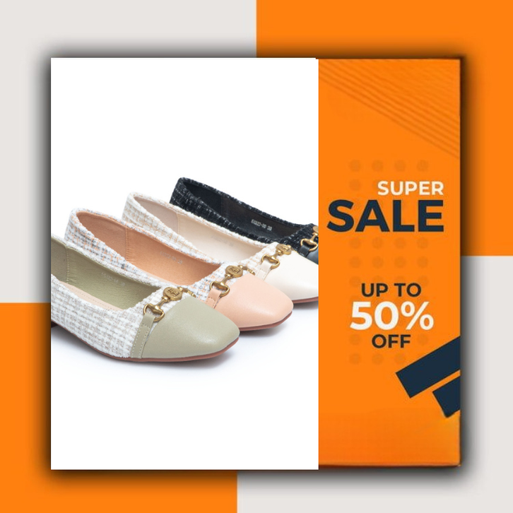[Star] Sandal Sepatu Wanita Kekinian Korean Sepatu Pantofel Wanita Hak Chunky Heels 2.5cm Bahan Tweed ELLORA EG 322-98