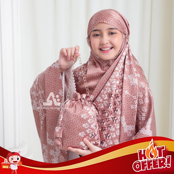 BARU+ Mukena Anak 2in1 Silk Motif Printing Mewah