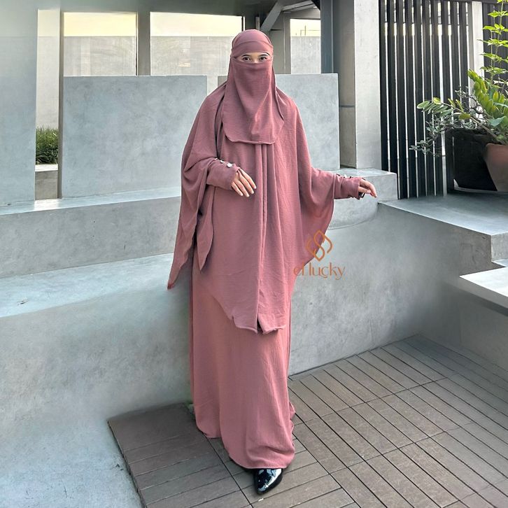 [Mall] Rauda Abaya Set Gamis Syari Dengan French Khimar Panjang + Niqab Bahan Crinkle