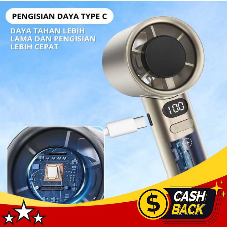 Kipas Angin Portable 15000mAh Turbo Mini Tangan Genggam Mini Fan Tampilan Daya LCD 120 Gigi