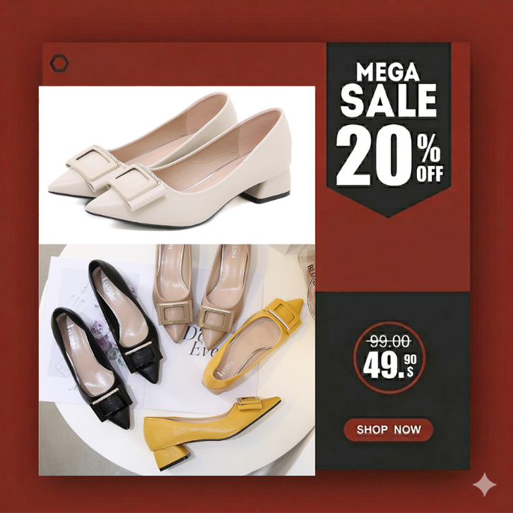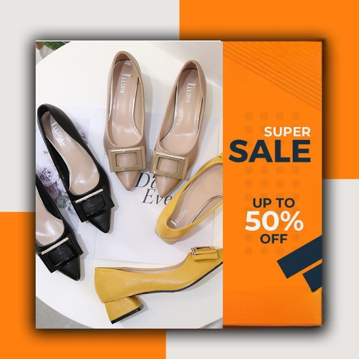 [Star] Sepatu Wanita Sepatu Sandal Slip On Wanita Sepatu Kerja Wanita Chunky Heels Hak Tahu Import ELLORA 593-31