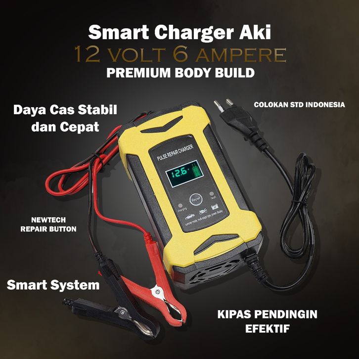 Smart Charger Aki 6A 12V Mobil Motor Cas aki INTELLIGENT CHARGING SYSTEM