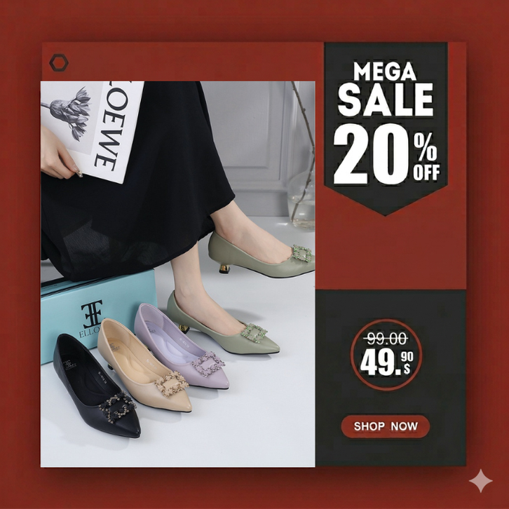 [Star] Sepatu Sandal Wanita Sepatu Kerja Kantor Wanita Import Sepatu Heels Kerja Wanita 4cm Import ELLORA EL-1676
