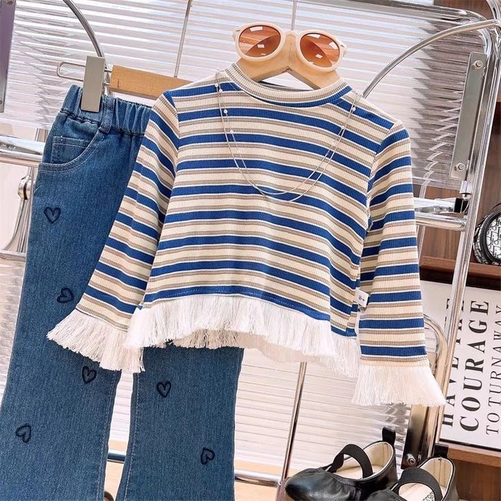 Baju Setelan Anak Fashion Kekinian Baju+Celana Jeans Anak Perempuan