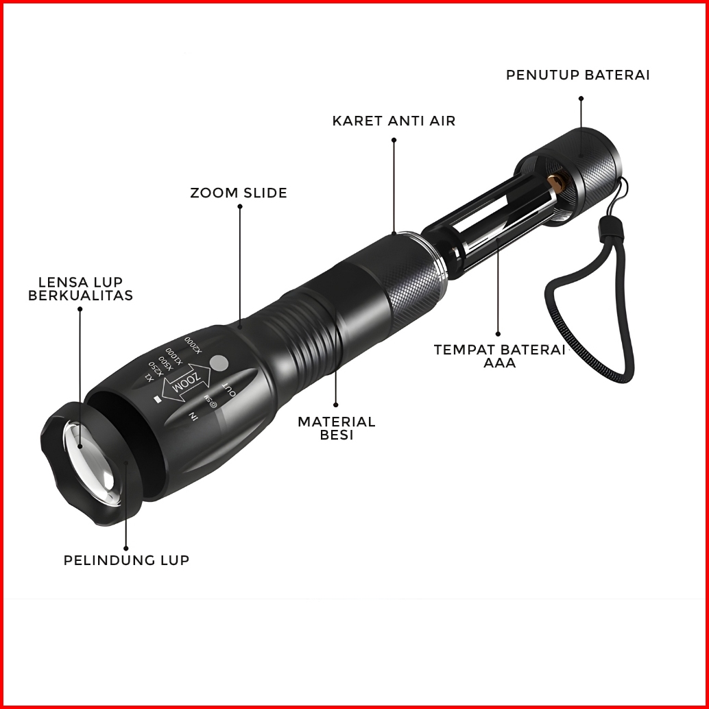 Suksestech Senter Aluminium Zoom Led Super Terang Waterproof Free Box T669