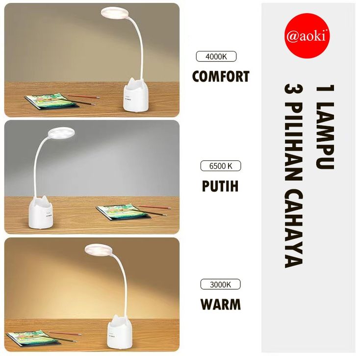 GRATIS ONGKIR AOKI Lampu belajar tricolour sentuh 3warna tempat pulpen ak 6059