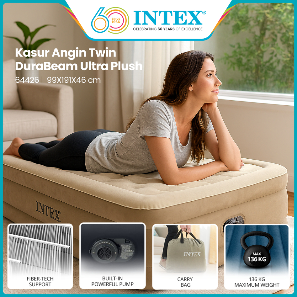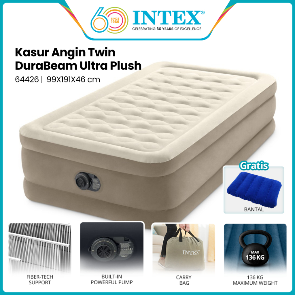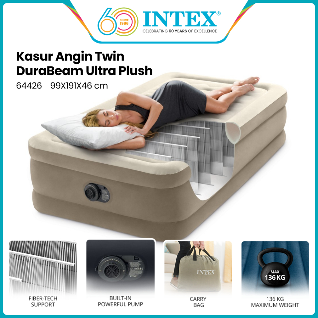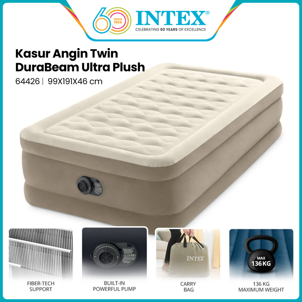 INTEX Kasur Angin Twin Ultra Plush Airbed With Fiber Tech 64426