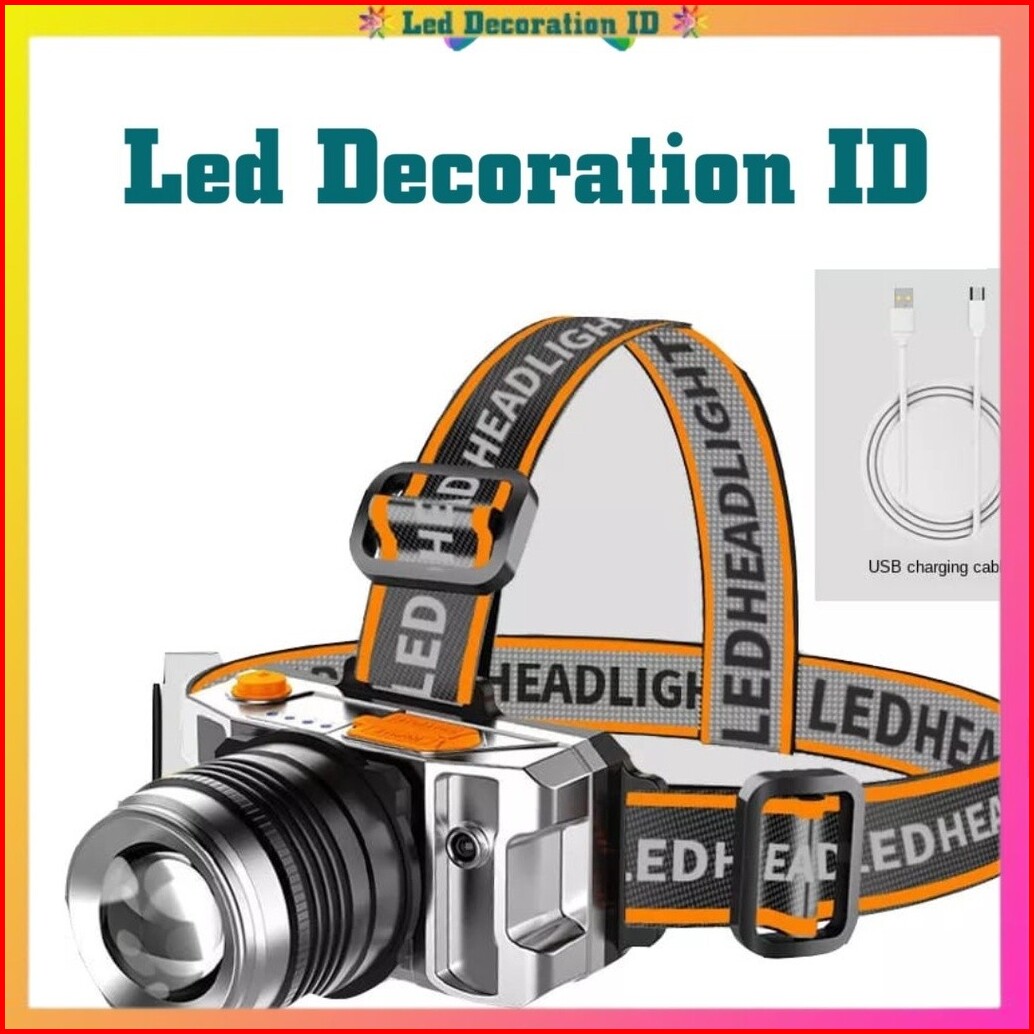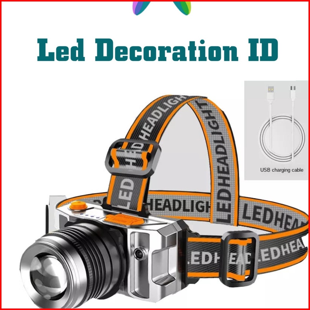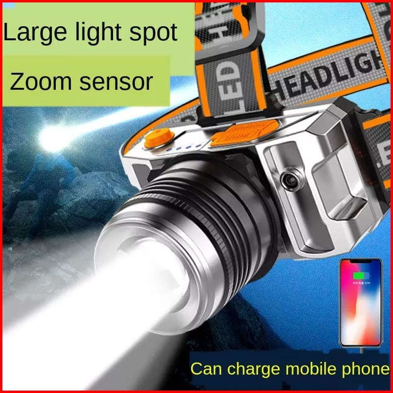 Senter Kepala Led Cob 50w Headlamp Cas Zoomable Senter Kepala Powerbank