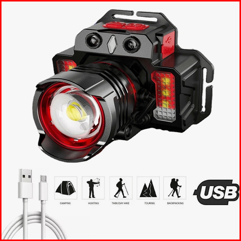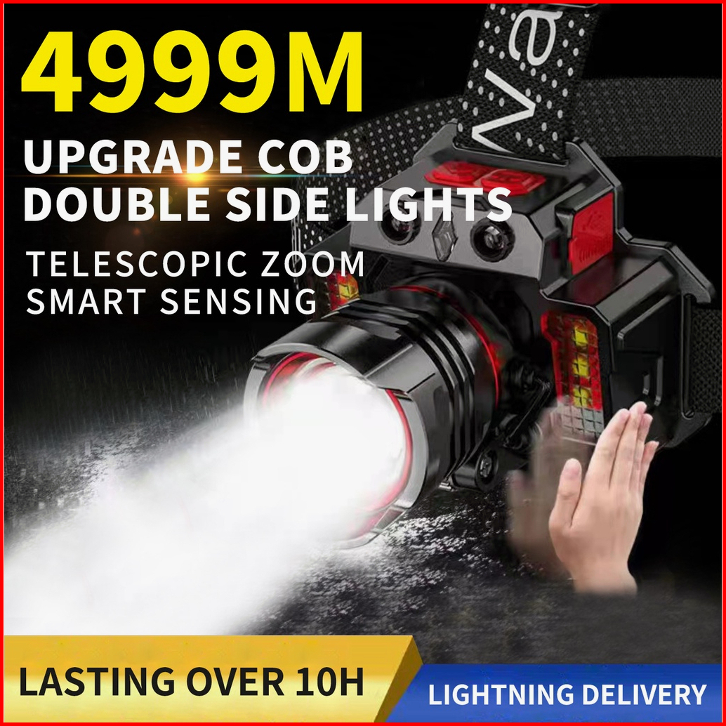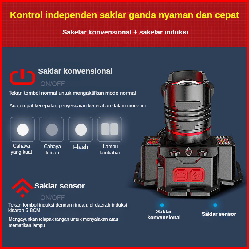 Led Senter Kepala Super Terang Led P50 5000 Lumens Dengan Sensor Cahaya Headlamp Outdoor Anti Air Usb Dikenakan Biaya Ta