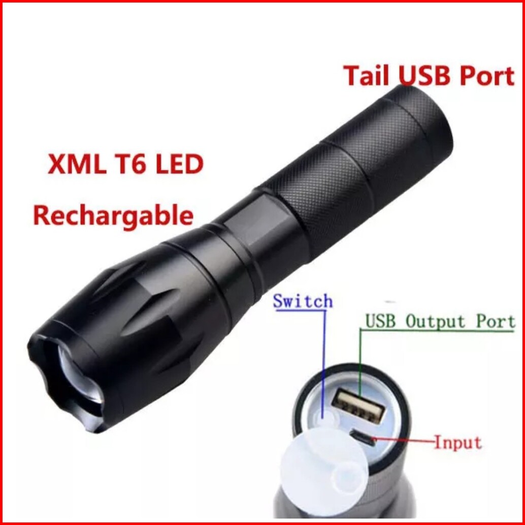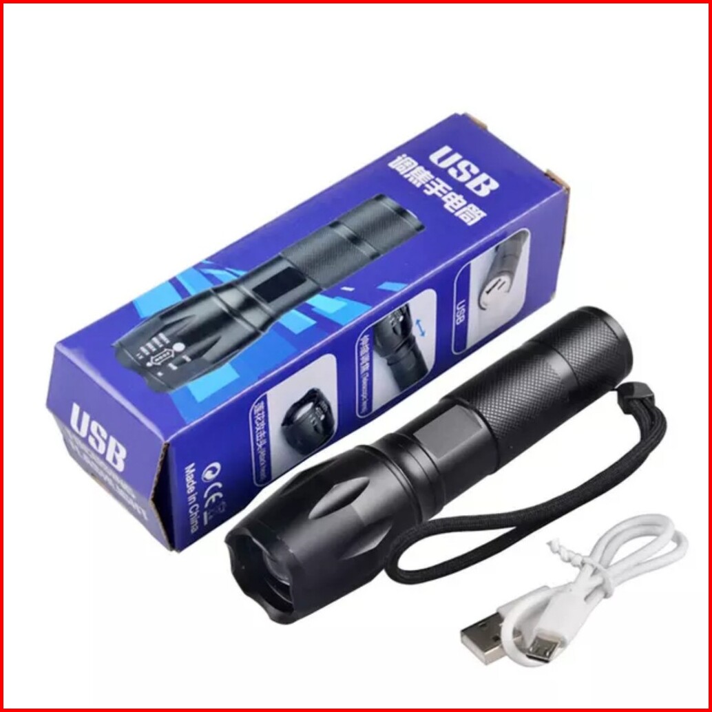 Senter Led Super Terang-recharge Usb-baterai Lithium Tanam Tahan Lama