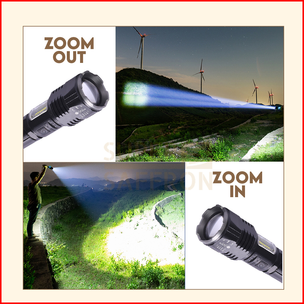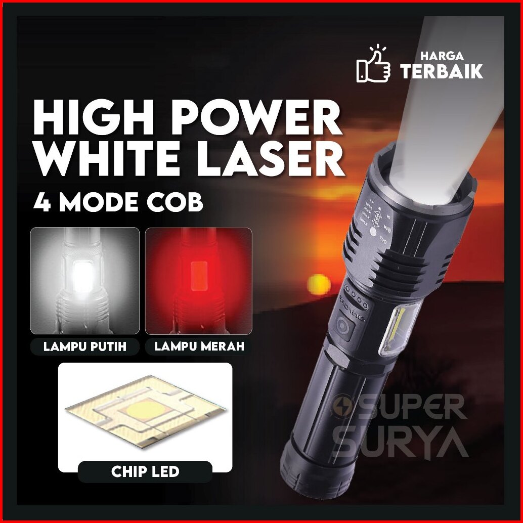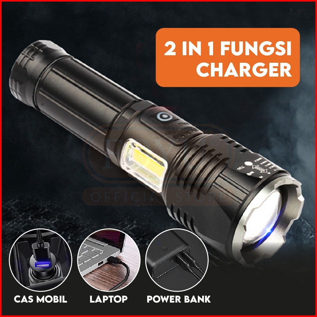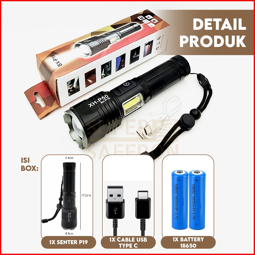 Senter Laser Fokus Super Terang Cob 7 Mode Cahaya Xhp50 Flashlight Swat Zoom
