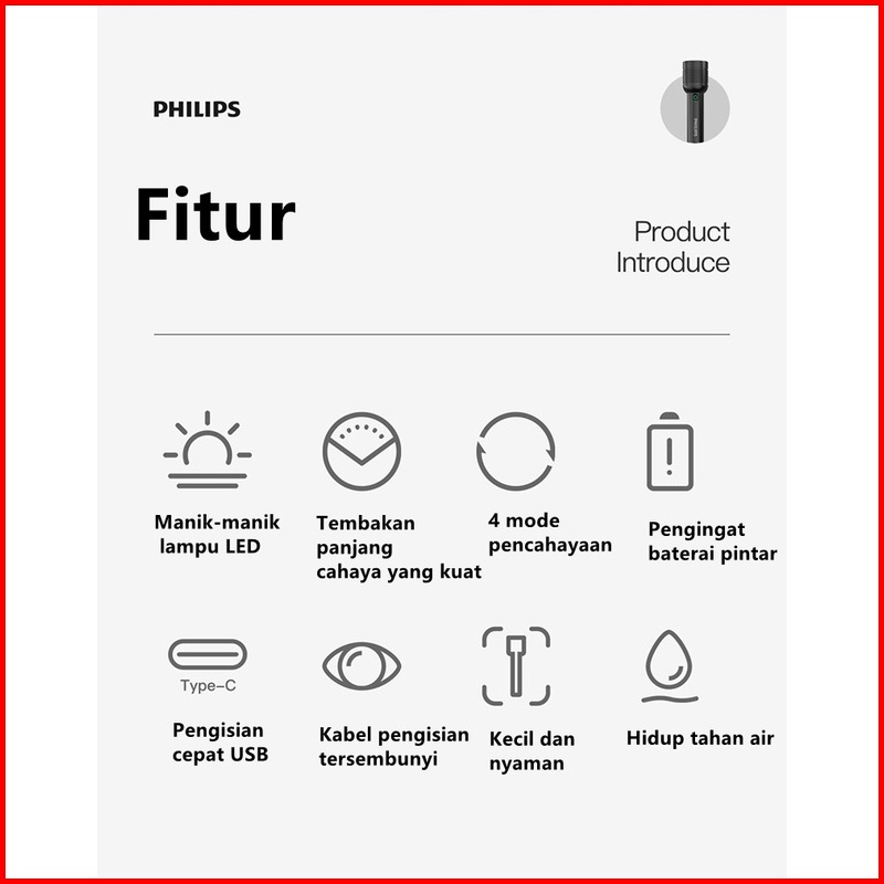 Philips Sfl1236 Lampu Senter Led Flashlight Senter Kecil Super Terang Tahan Air Senter Cas Type C