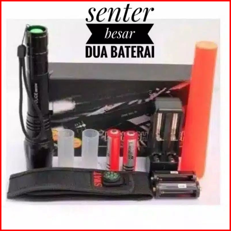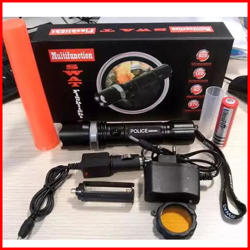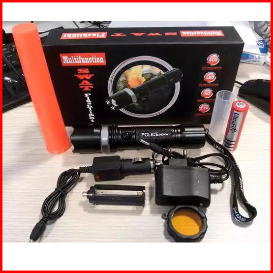 Senter Swat Police Led T6 99000w - Dua Baterai Dan Satu Baterai - Senter Swat Emergency