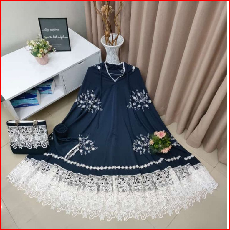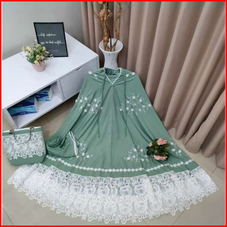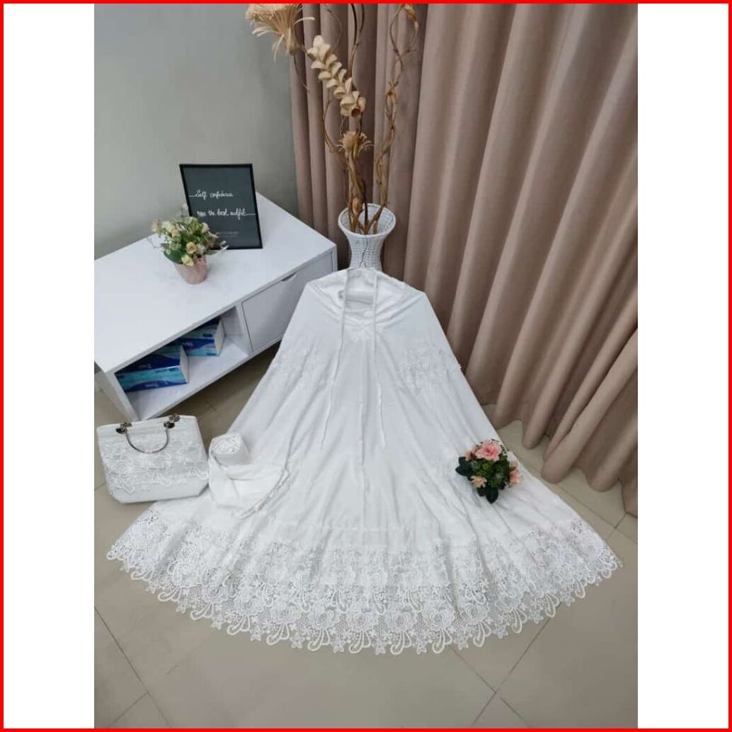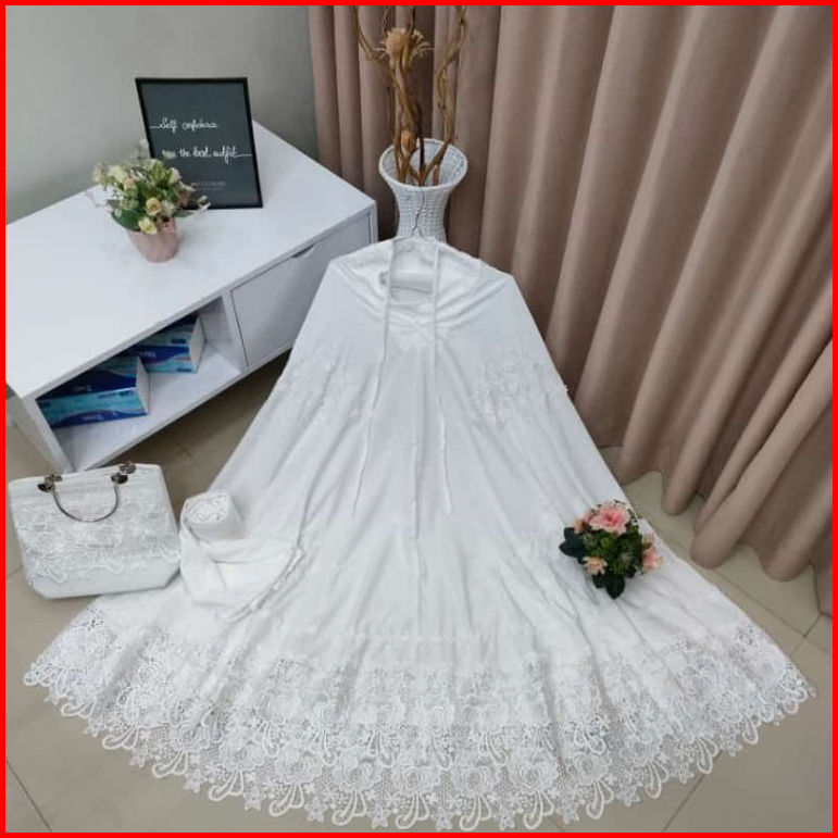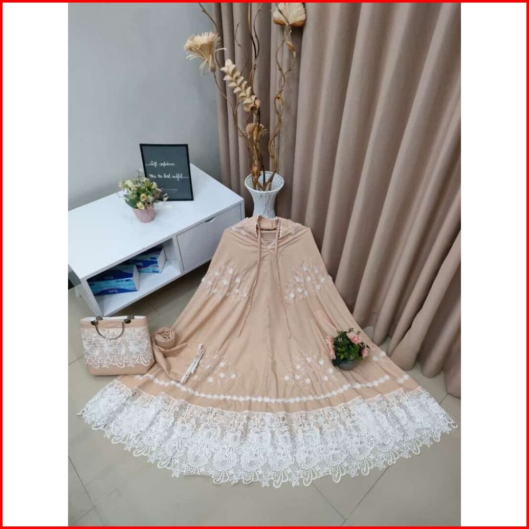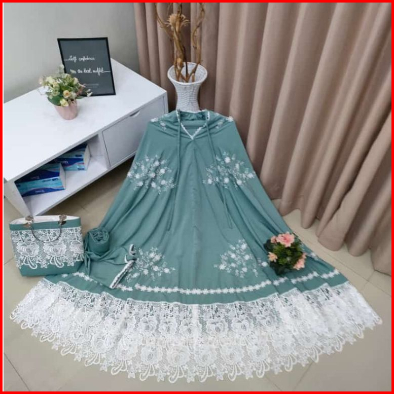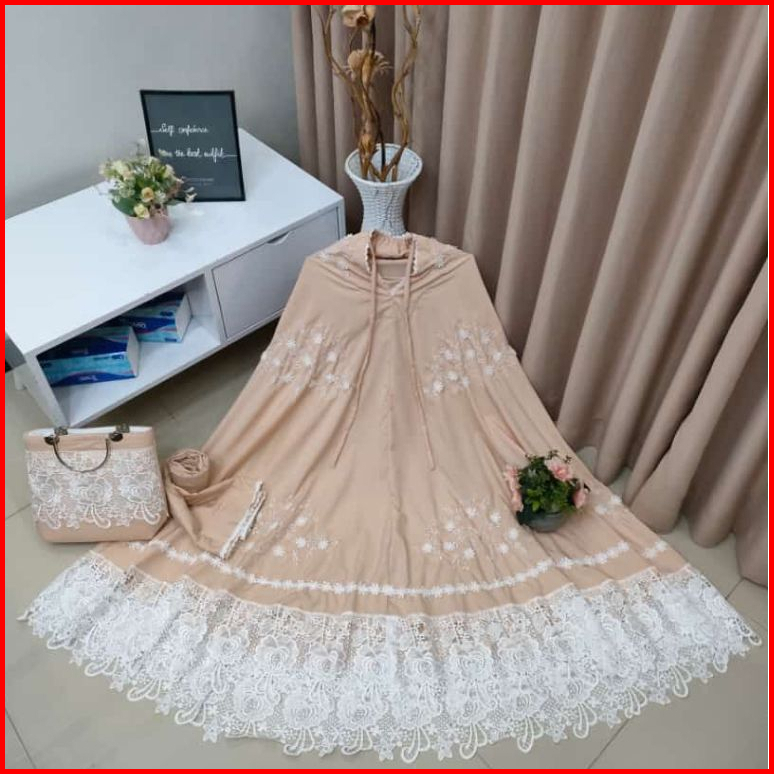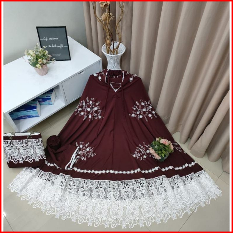 Mukena Renda Bordir Mewah Sutra Silky Premium Free Tas Behel