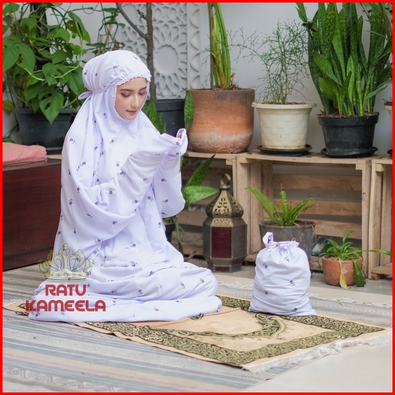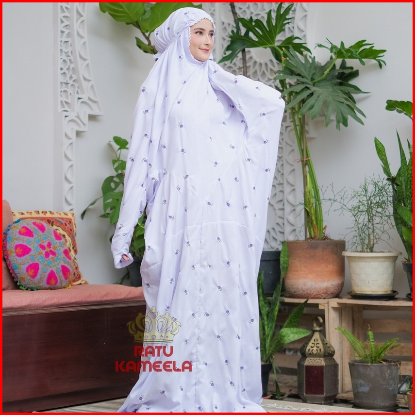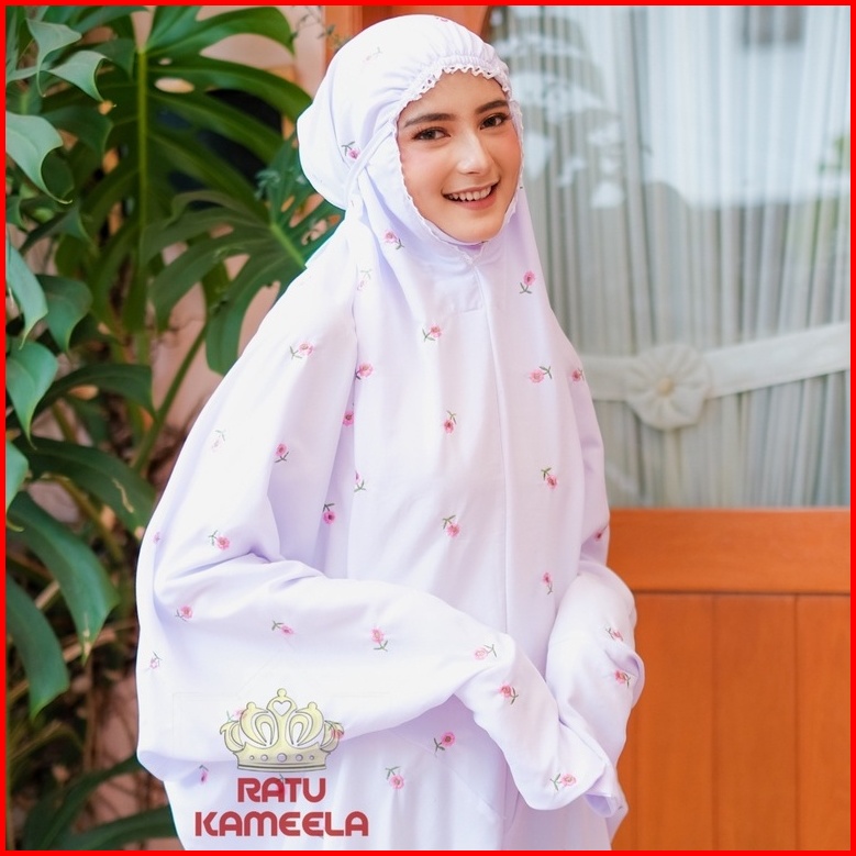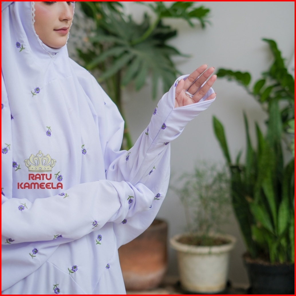 Mukena Terusan Dewasa Jumbo Bordir Seribu Bunga Katun Mikro Lembut Ratu Kameela