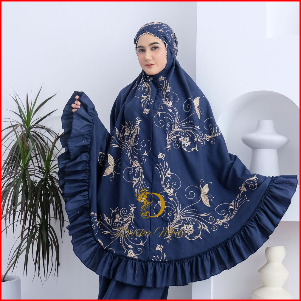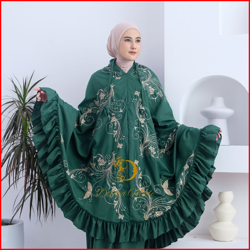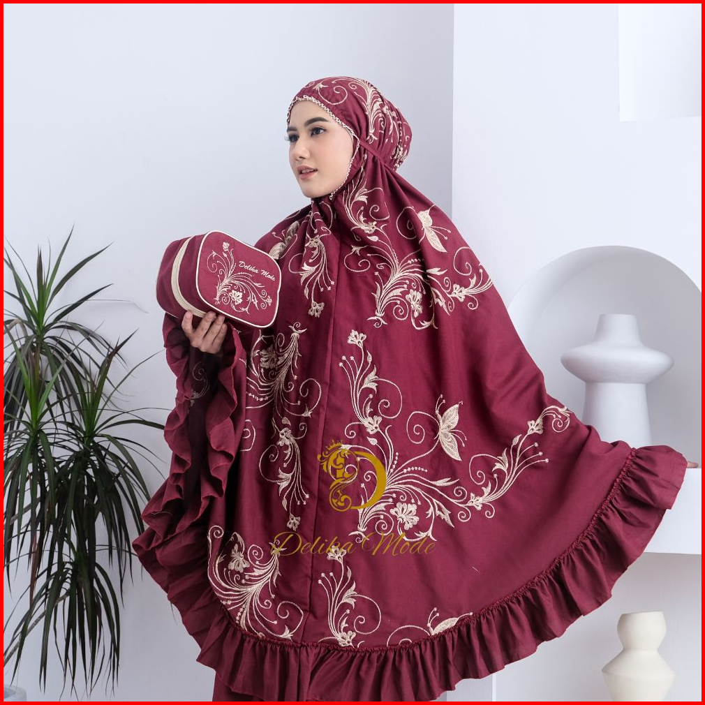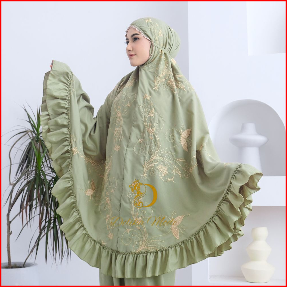 Delikamode - Mukena Dewasa Bordir 2in1 Resleting Rempel Katun Premium Aqeella Series