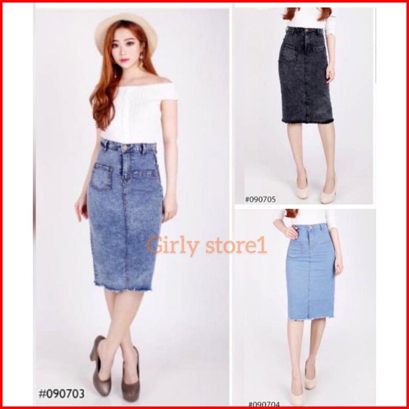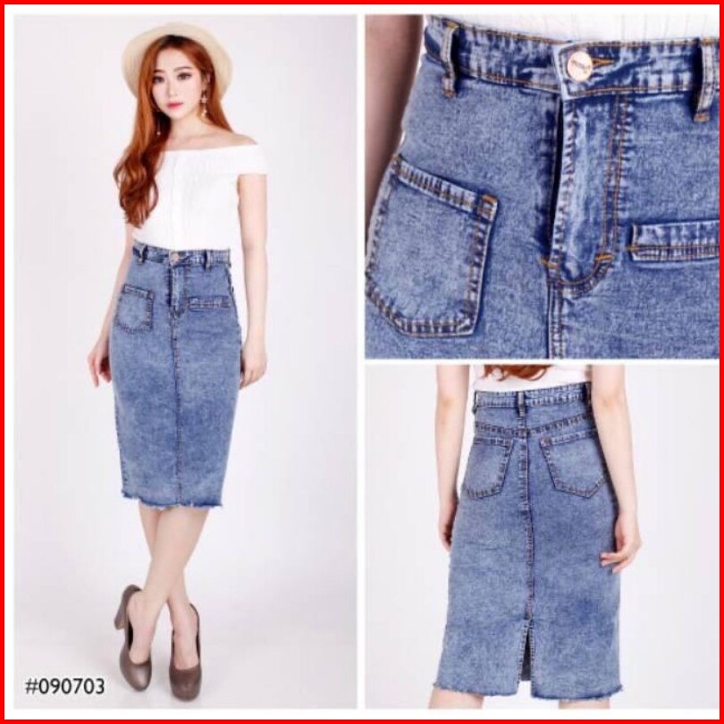 Size S - Big Size Rok Jeans Wanita 7 8 Light Skirt Stretch Melar