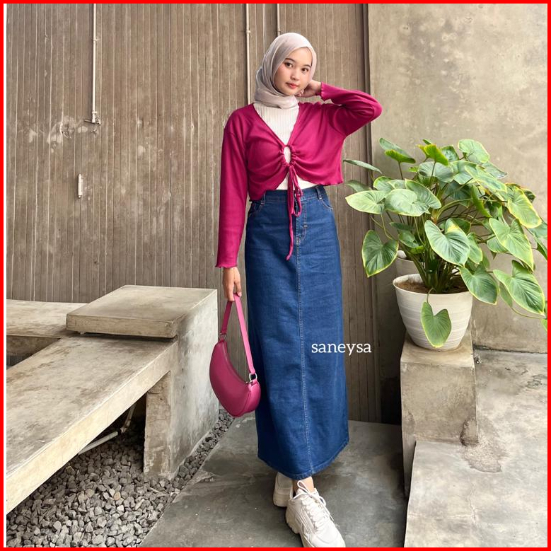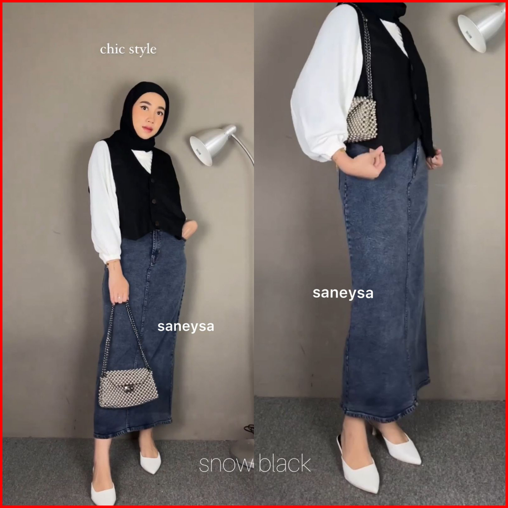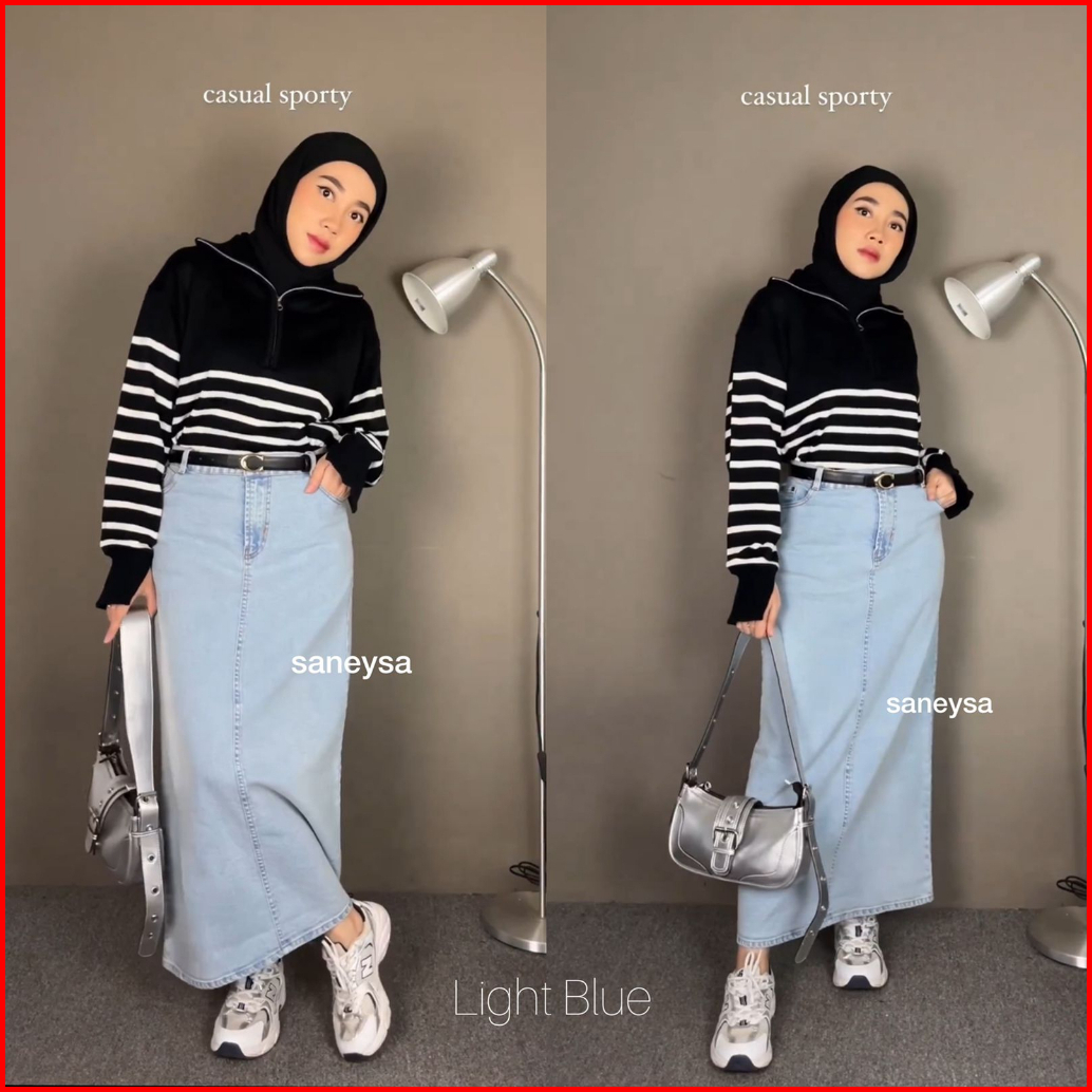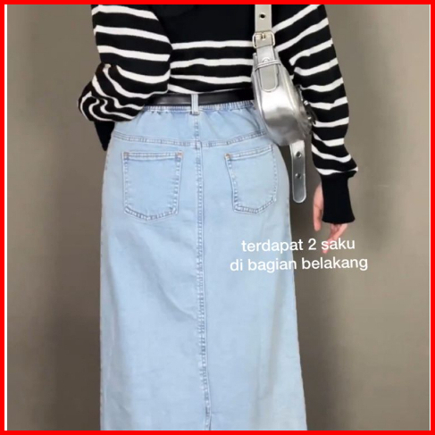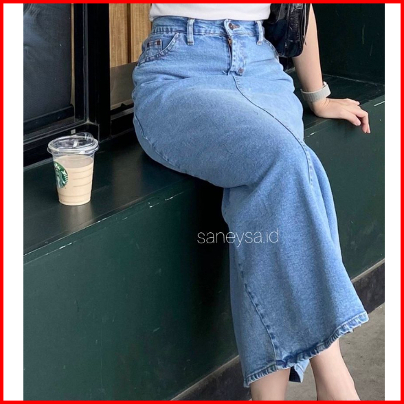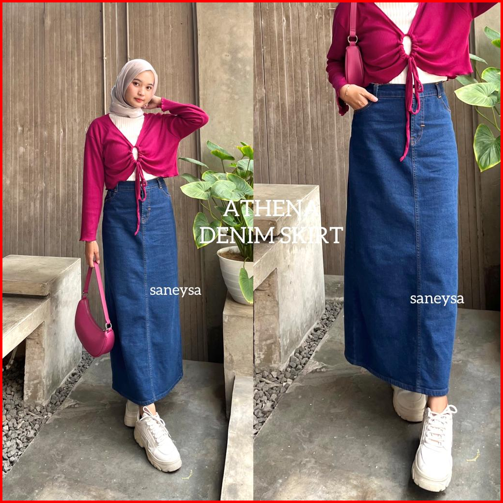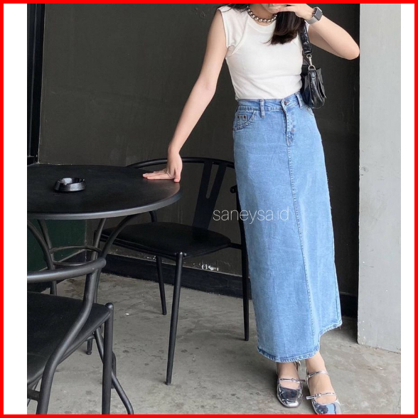 Athena Denim Skirt - Rok Jeans Highwaist Panjang - Rok Span Panjang - Maxi Skirt - Rok Kekinian - Jeans Panjang - Slit M