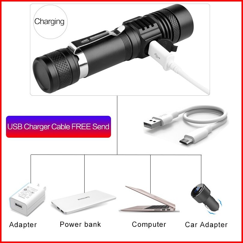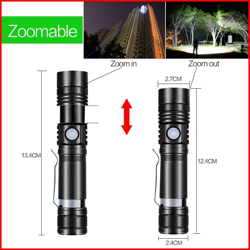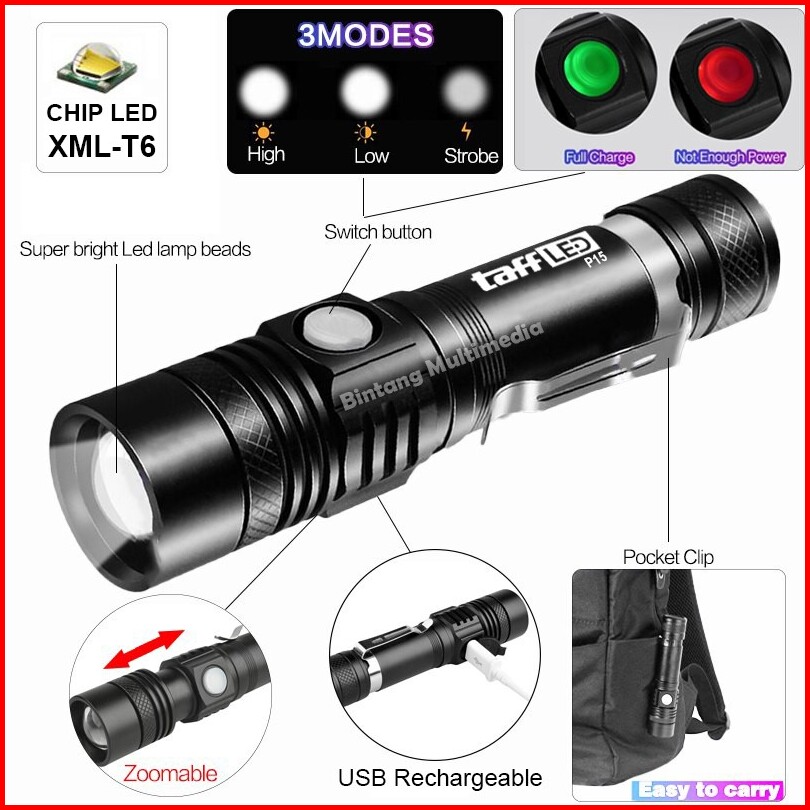 Taffled Senter Led Cas Usb Rechargeable Xml T6 P15 Zoom Terang Jarak Jauh Pocketman Waterproof