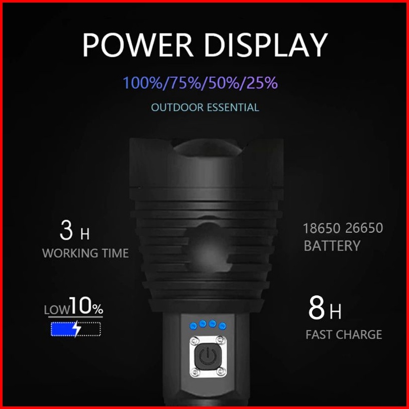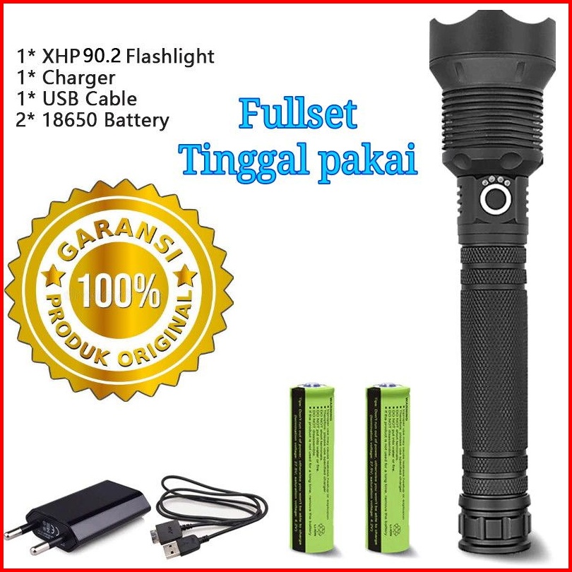 Senter Led Xhp90.2 Charger Super Terang Jarak Jauh 90.000 Lumens Original