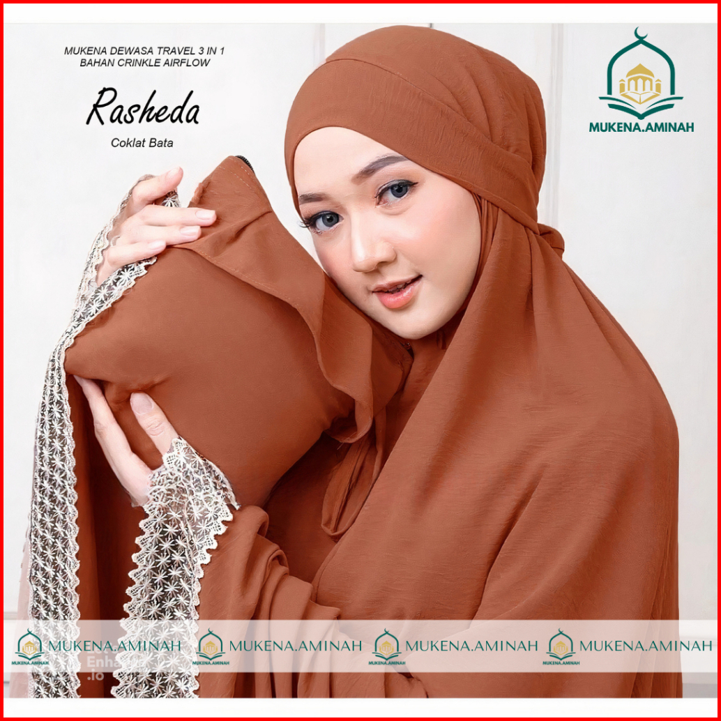 Mukena.aminah Mukena Dewasa Crinkel Airflow 3in1 Jumbo Renda Import Rasheda