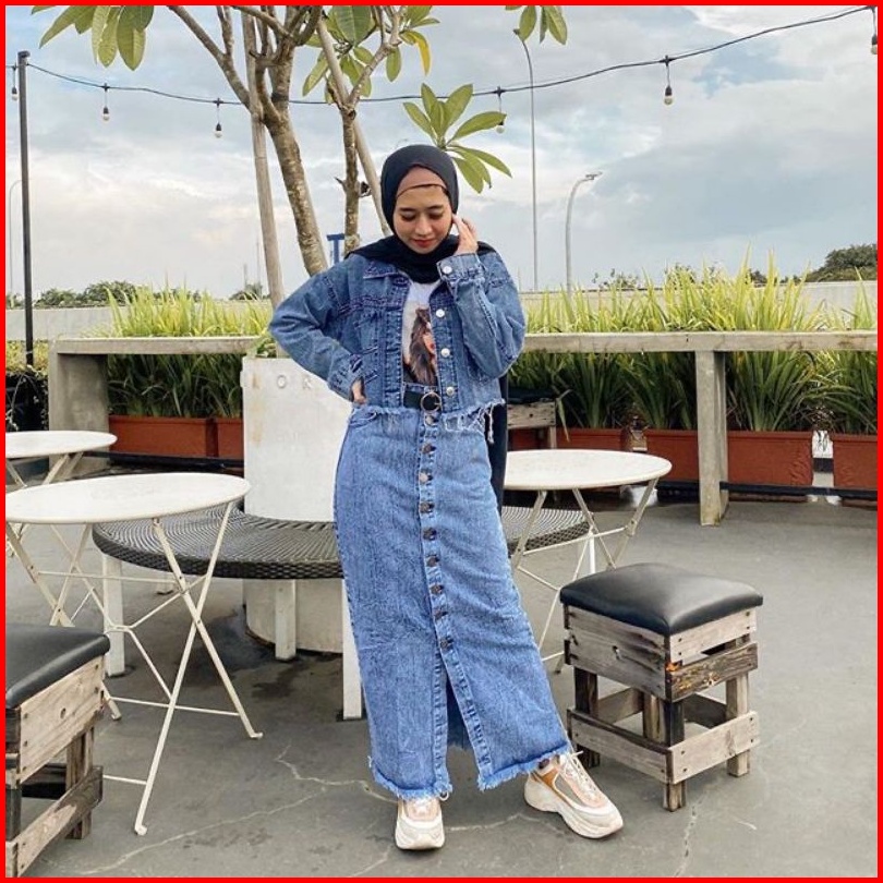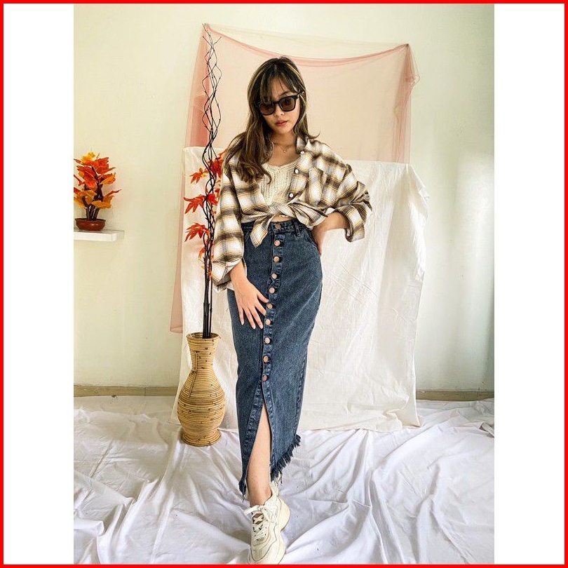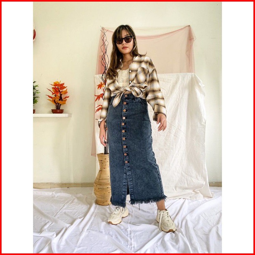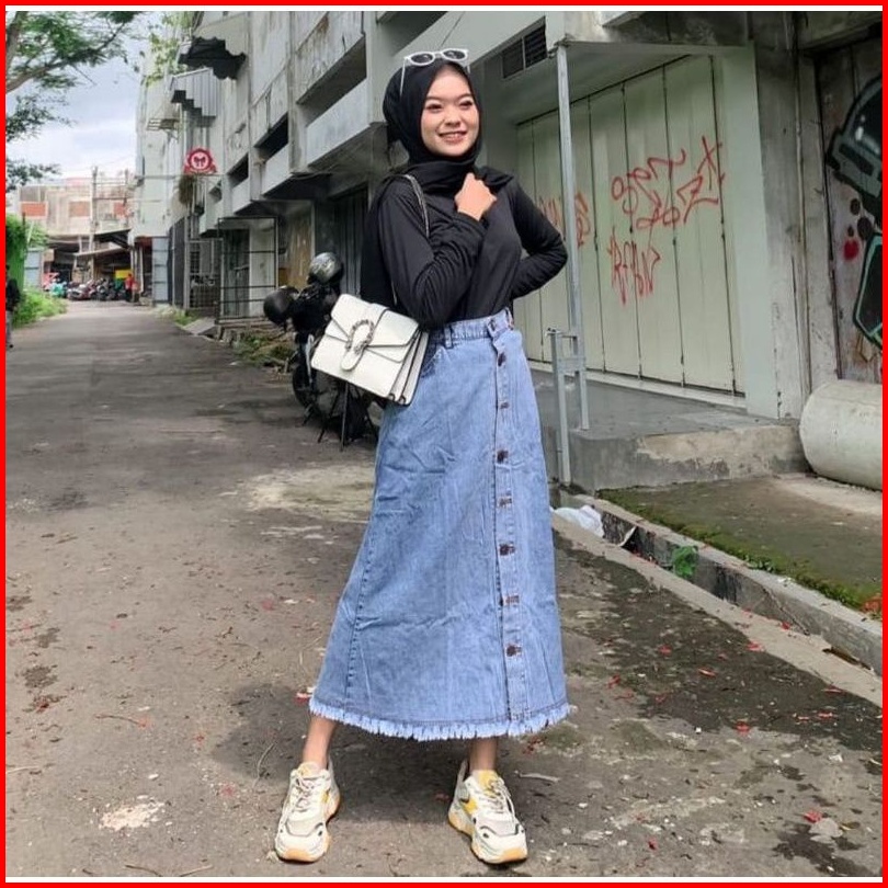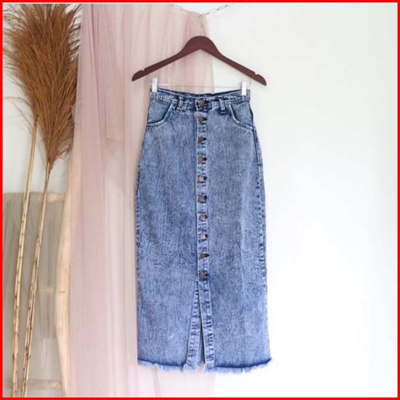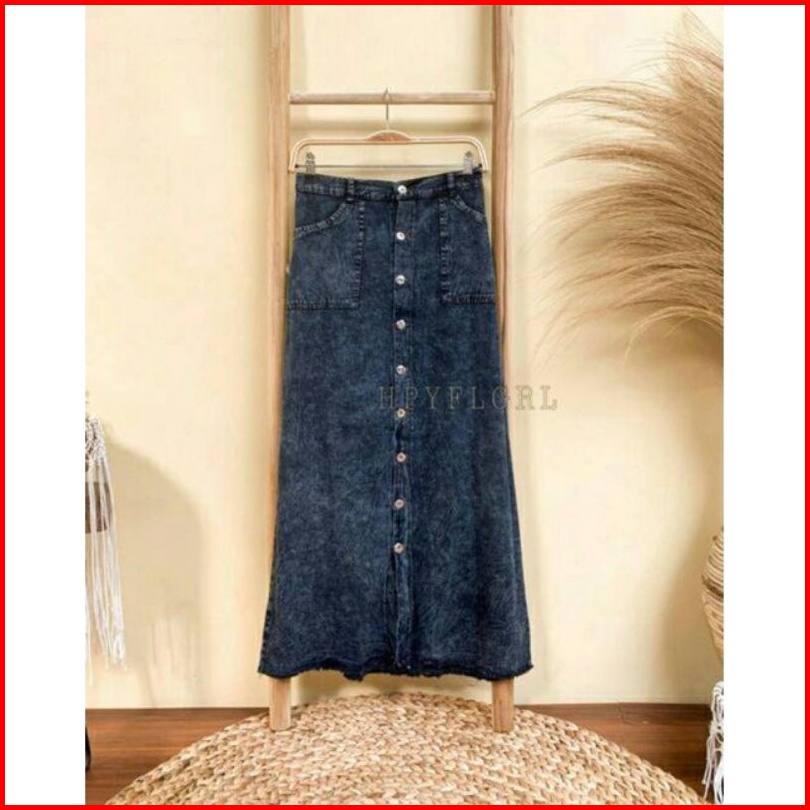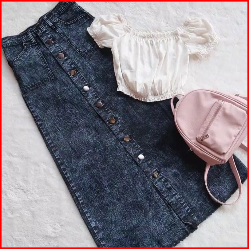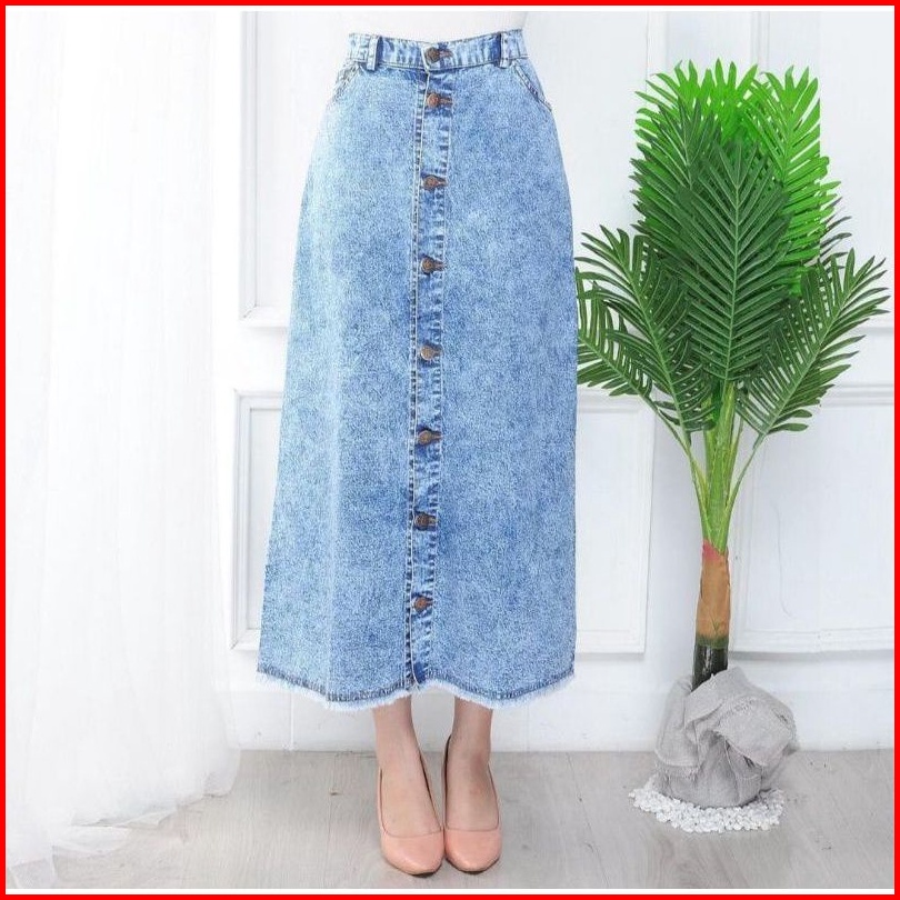 Rok Jeans Button Snow Black Dan Snow Blue Jeans Rok Kancing Rawis