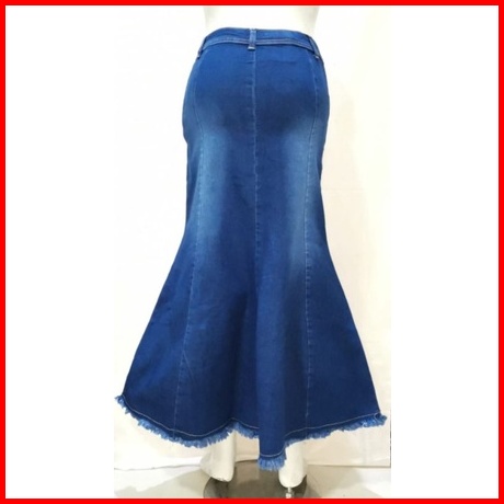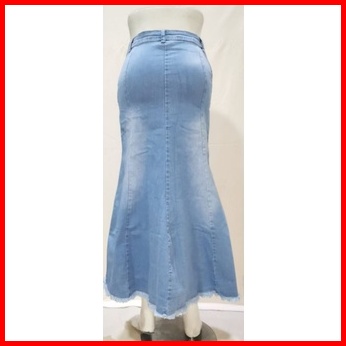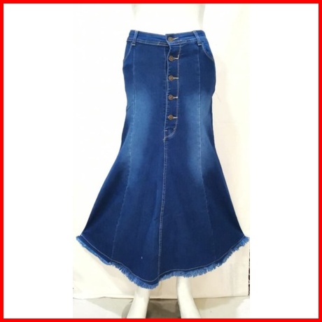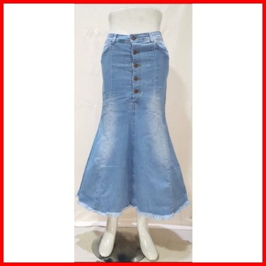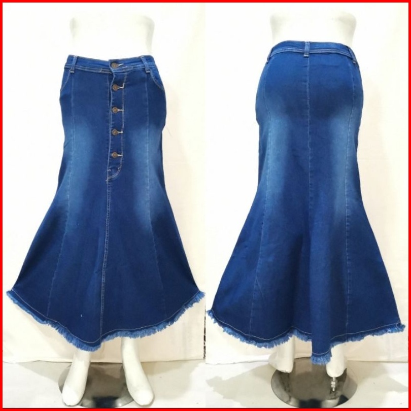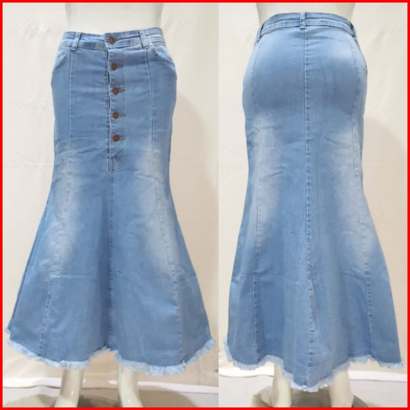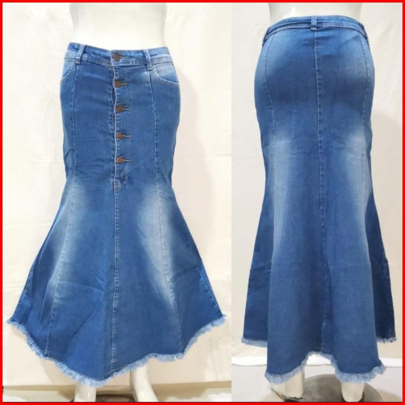 Rok Jeans Maxi Mermaid Kancing 5 Duyung Rawis Soft Jeans
