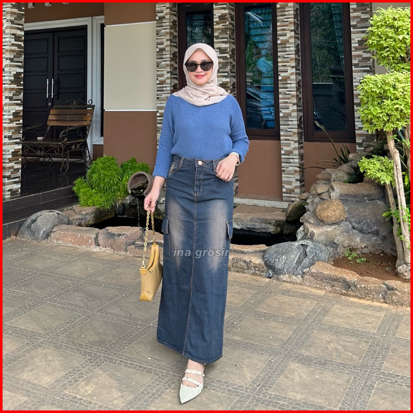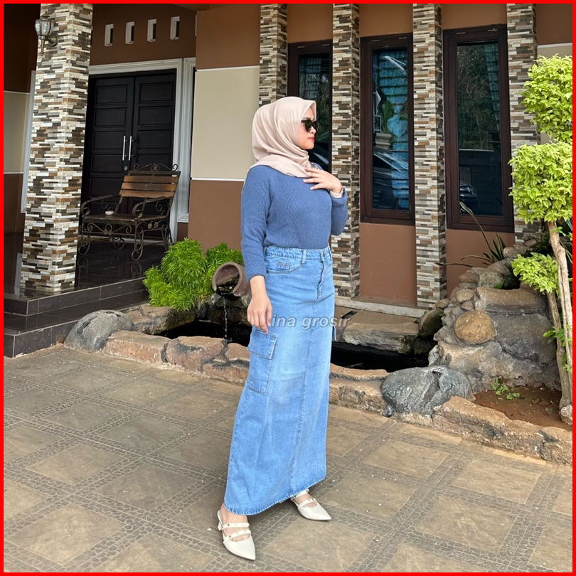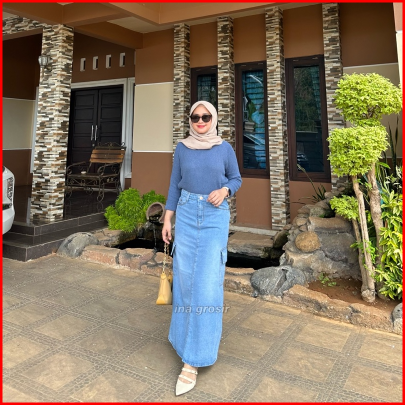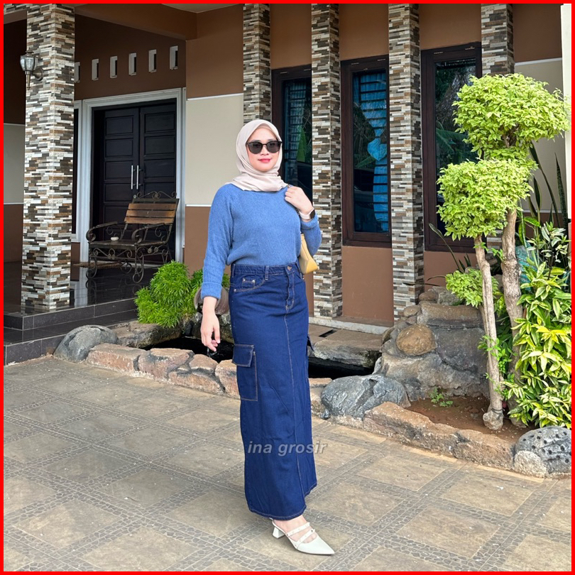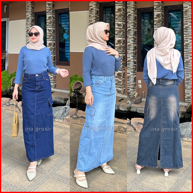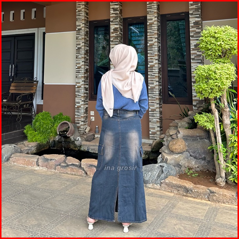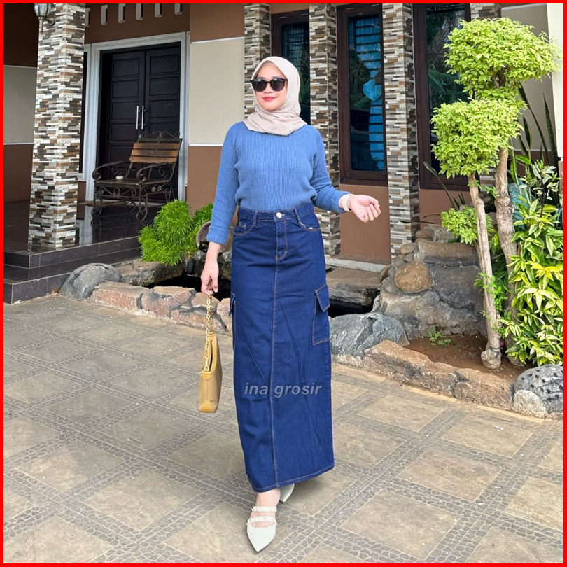 Ina Grosir - Highwaist Rok Cargo Seventy Jeans Panjang Cargo Skirt Jeans Premium