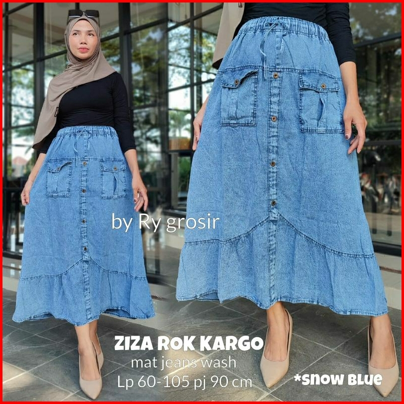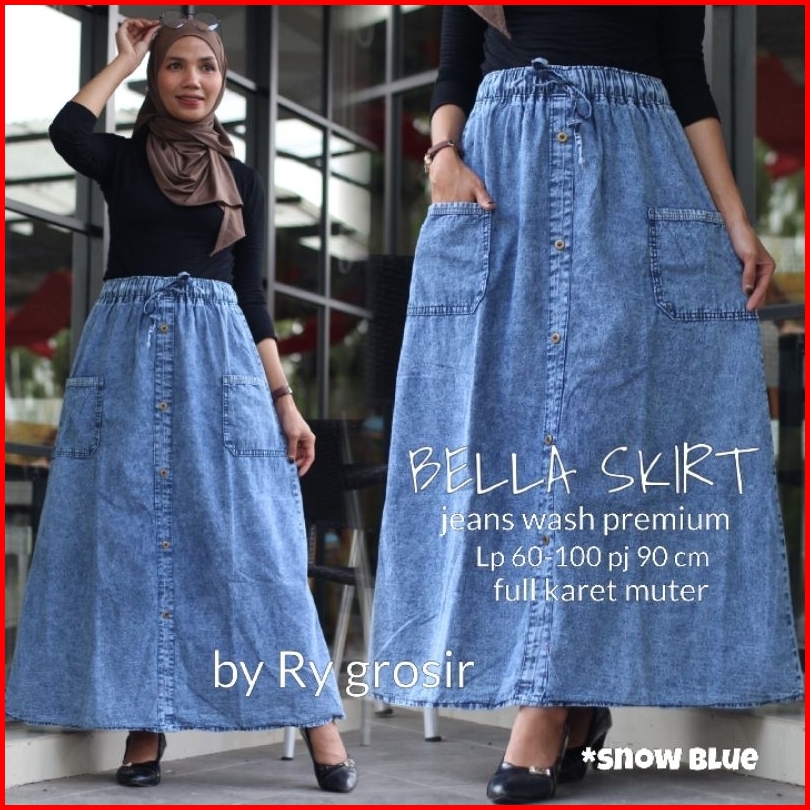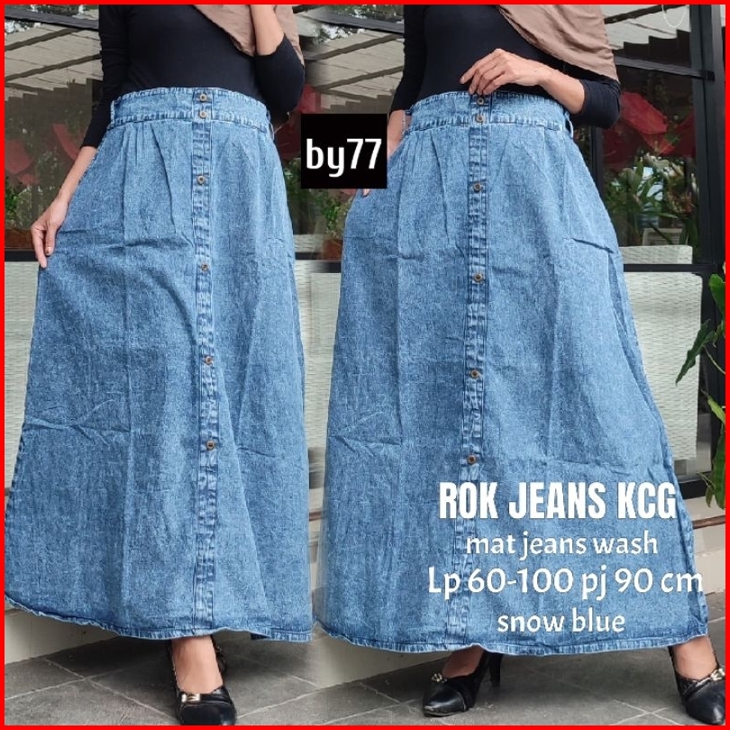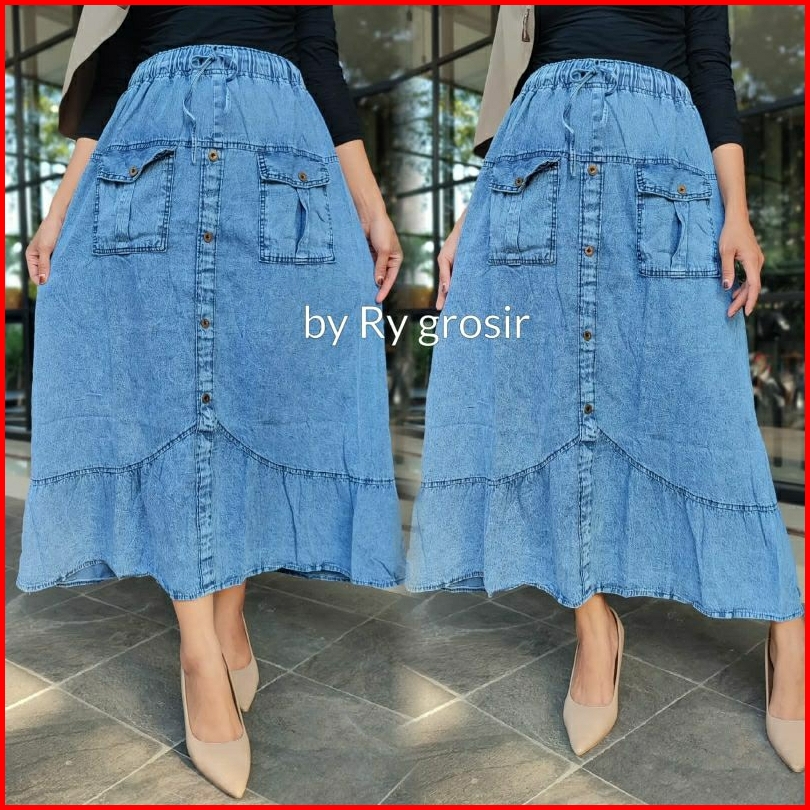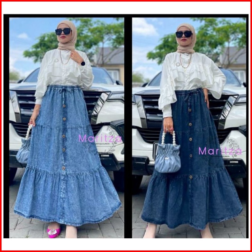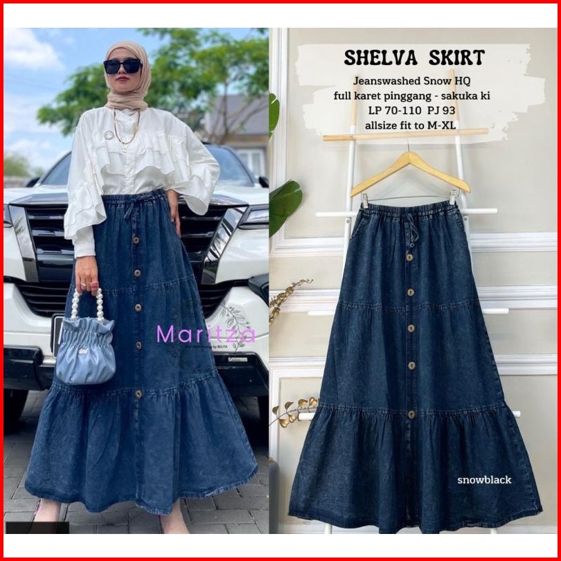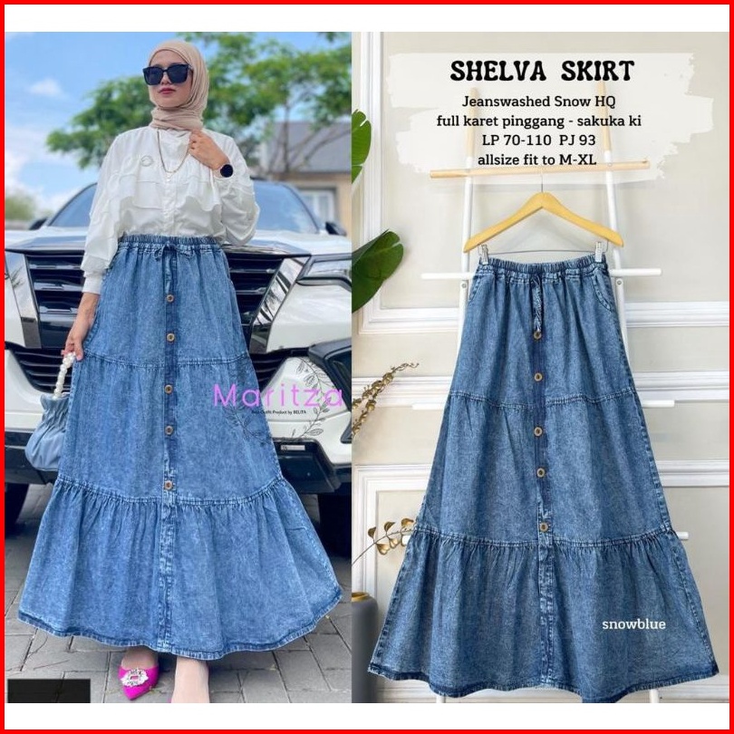 Rok Wanita Dewasa Shelva Skirt Jeans Panjang Mayung Fashion Variasi Kancing
