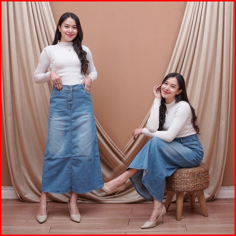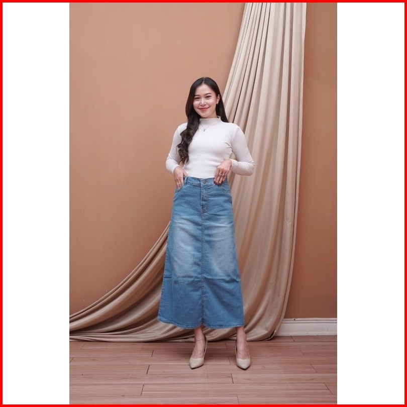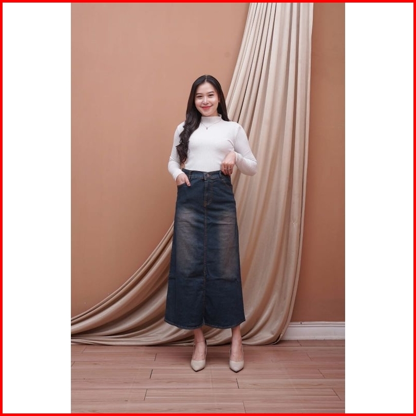 Rok Jeans Panjang Skirt Theana Rok Highwaist Wanita Terbaru . Rok Jeans Jumbo Korean Style